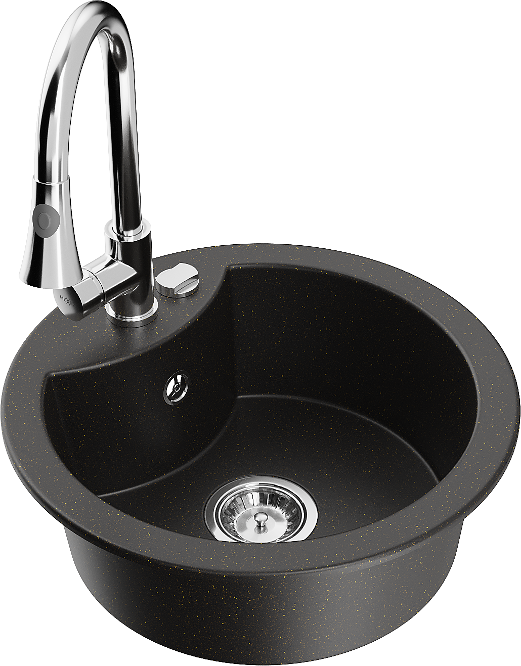 Mexen Diego chiuvetă din granit cu 1 compartiment cu baterie de bucătărie Elia, negru/auriu metalic - 6512-75-670101-00