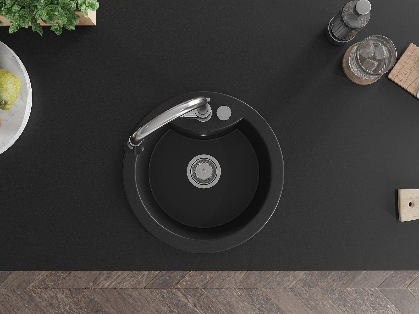 Chiuveta are o gaură prezentată cu un diametru de 35 mm pentru auto -burst. Poate fi folosit, printre altele Pentru montarea unui distribuitor de lichid care va elimina prezența sticlelor de plastic în bucătărie și îi va oferi un finisaj elegant.