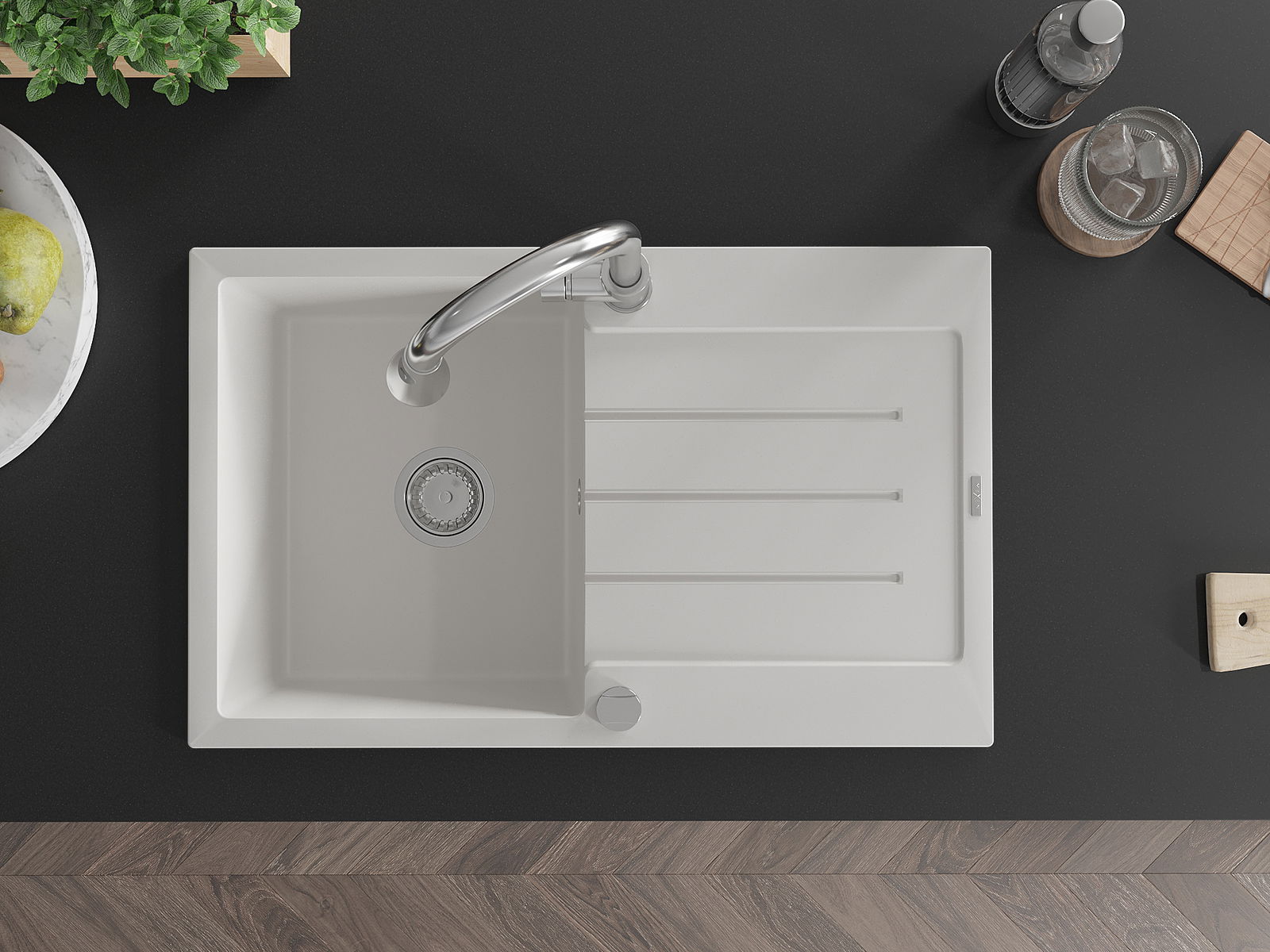 Suprafața chiuvetei este rezistentă la pete și decolorarea, datorită căreia este ușor de curățat și își păstrează culoarea mult timp. Estetică și practic completarea fiecărei bucătării.