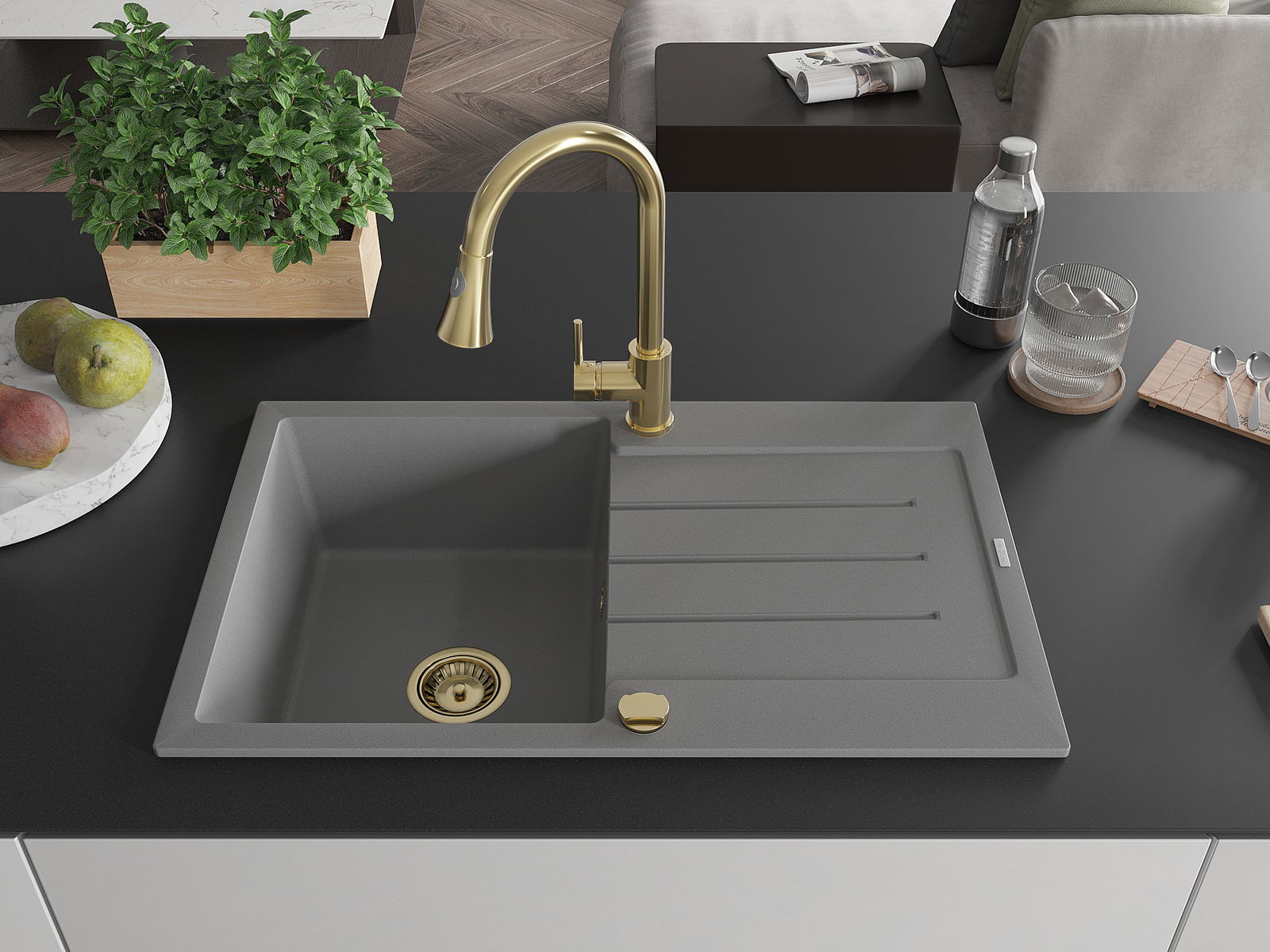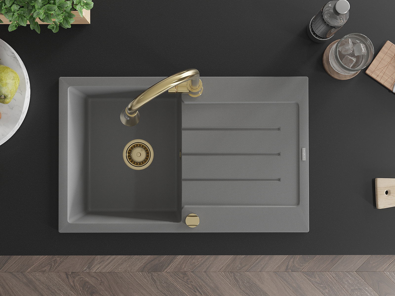 Suprafața chiuvetei este rezistentă la pete și decolorarea, datorită căreia este ușor de curățat și își păstrează culoarea mult timp. Estetică și practic completarea fiecărei bucătării.