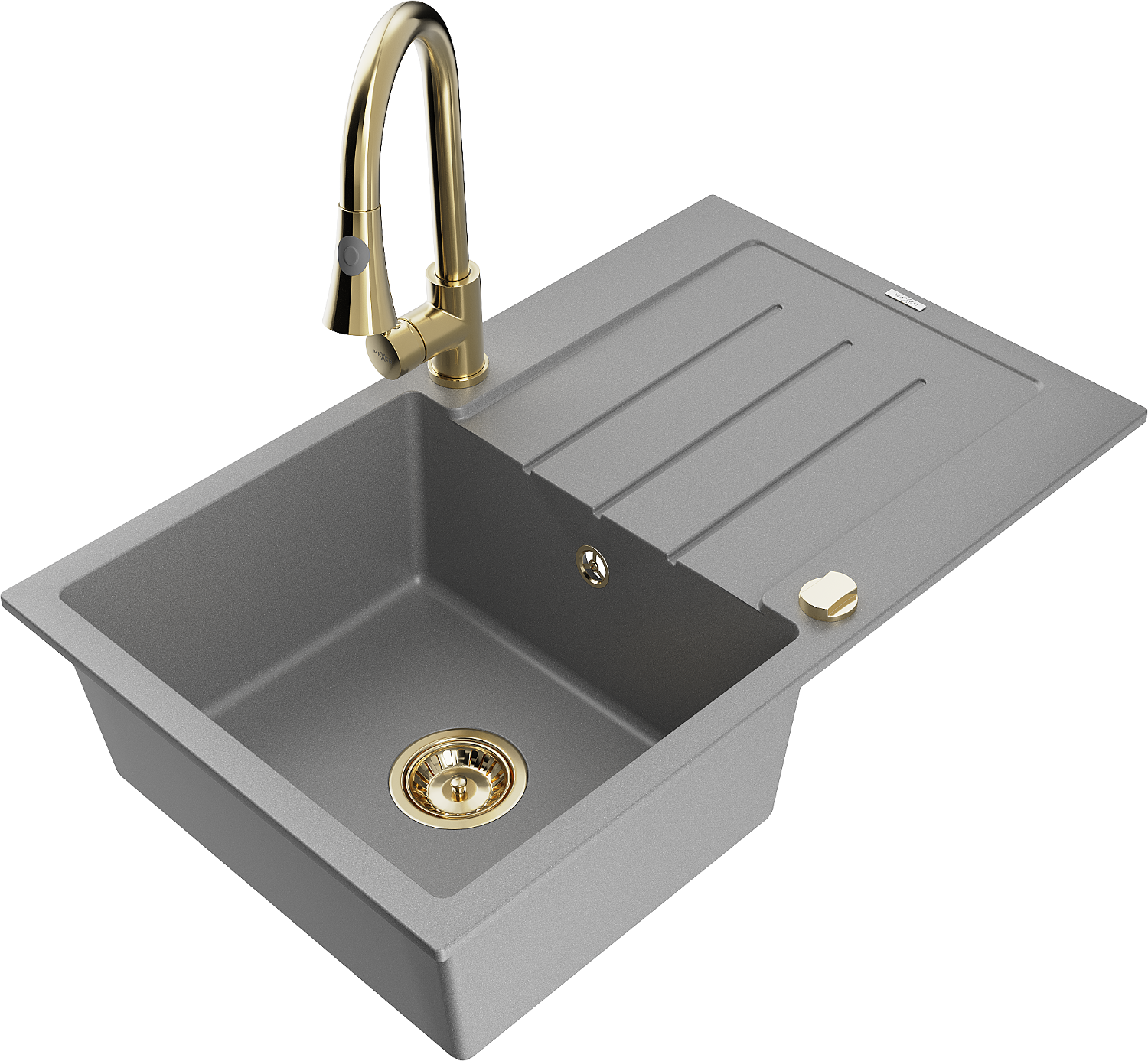 Mexen Bruno chiuvetă de granit cu 1 compartiment și scurgător și baterie de bucătărie Elia, gri - 6513-71-670101-50