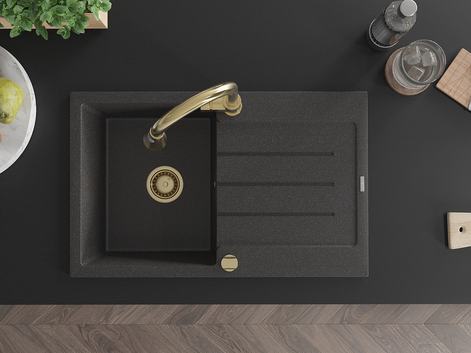 Mexen Bruno chiuvetă granit comp. 1 cu scurgător și baterie bucătărie Elia, negru cu pete - 6513-76-670101-50