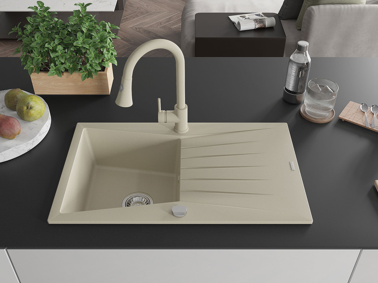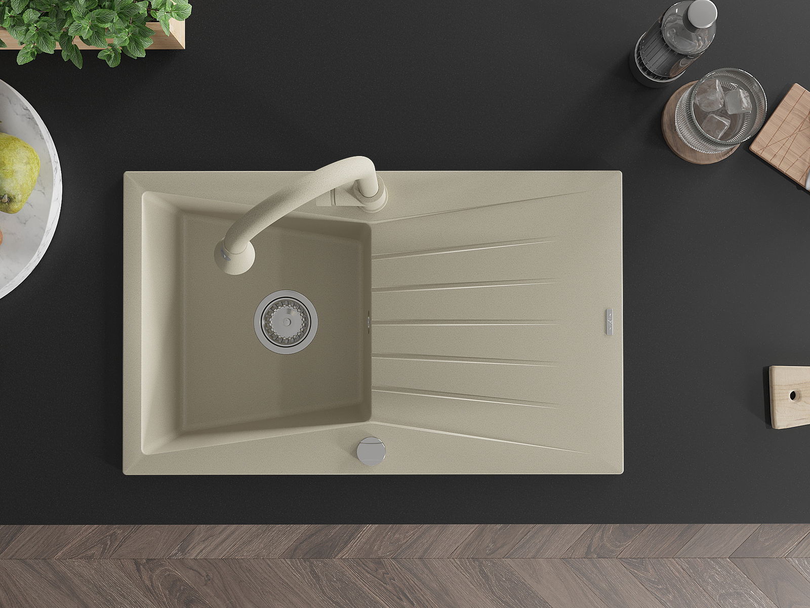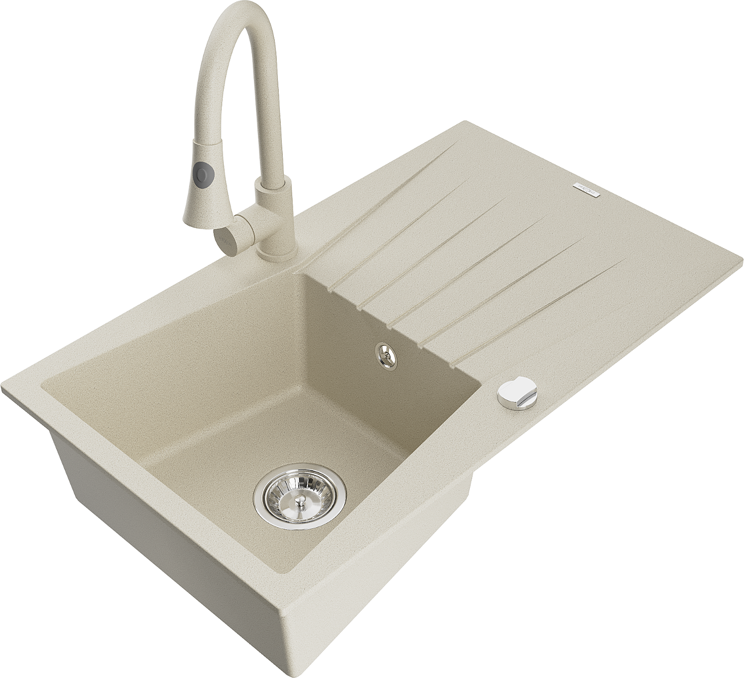 Mexen Cesar chiuvetă de granit 1-cameră cu scurgător și baterie de bucătărie Elia, bej - 6514-69-670101-69