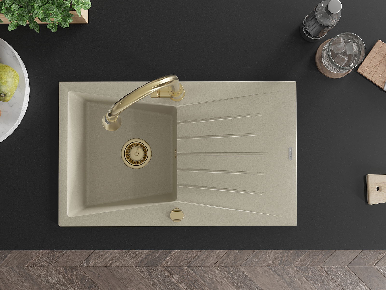 Suprafața chiuvetei este rezistentă la pete și decolorarea, datorită căreia este ușor de curățat și își păstrează culoarea mult timp. Estetică și practic completarea fiecărei bucătării.
