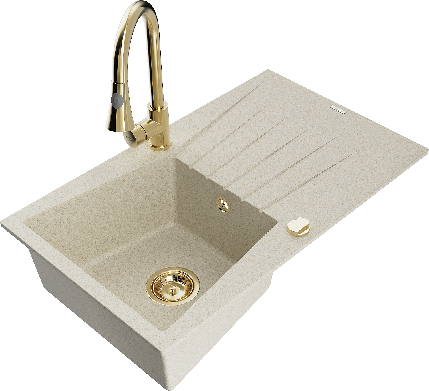 Mexen Cesar chiuvetă de granit cu 1 compartiment și picurător și baterie de bucătărie Elia, bej - 6514-69-670101-50