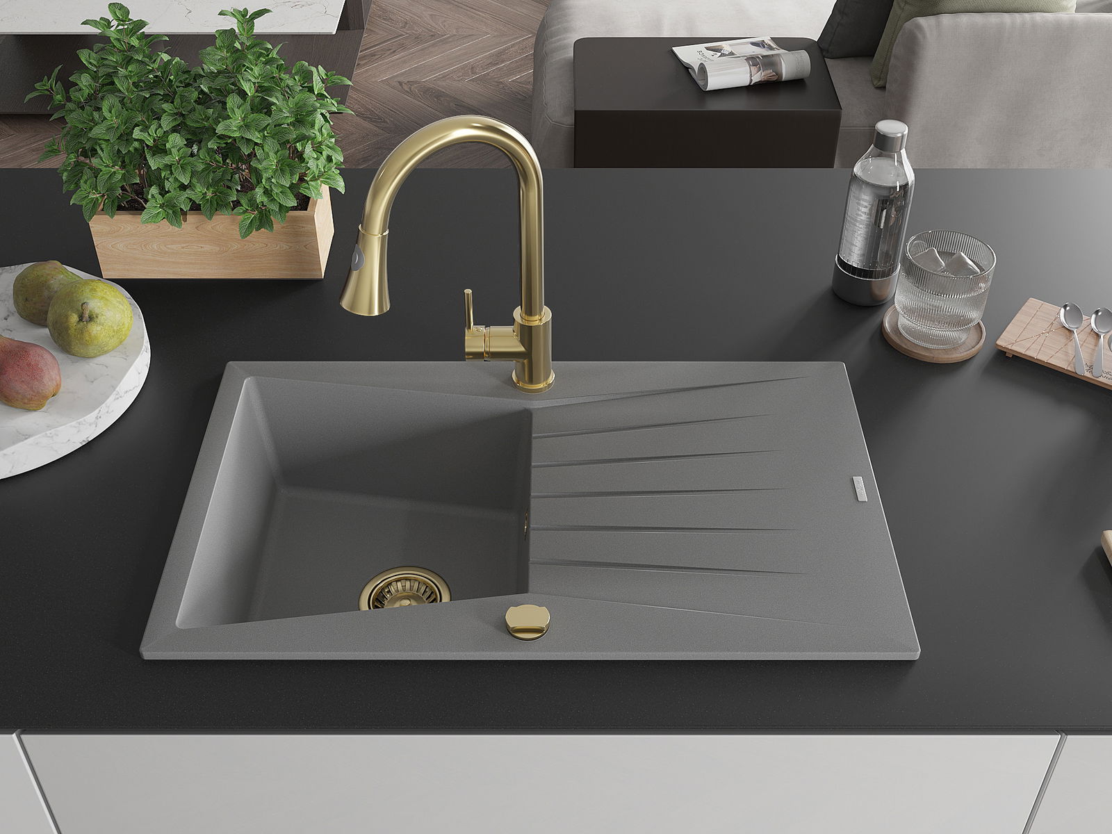 Suprafața chiuvetei este rezistentă la pete și decolorarea, datorită căreia este ușor de curățat și își păstrează culoarea mult timp. Estetică și practic completarea fiecărei bucătării.