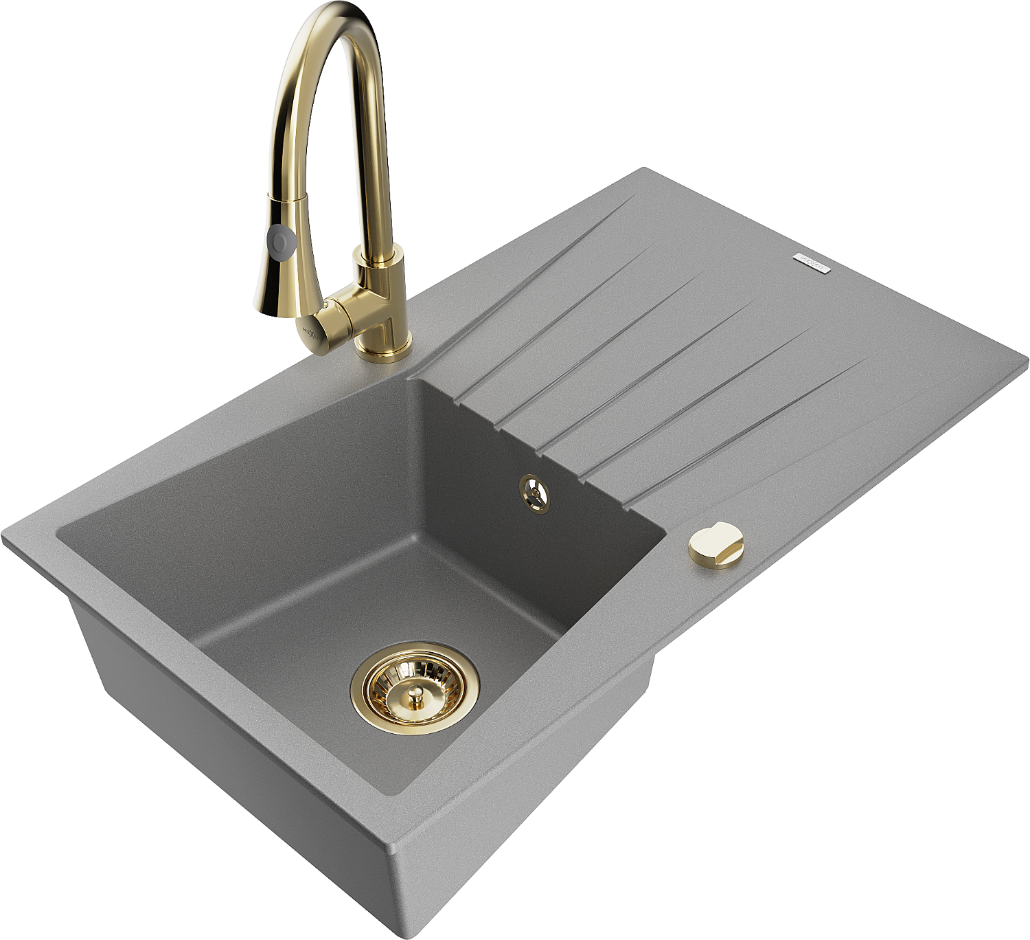 Mexen Cesar chiuvetă de granit cu 1 compartiment și baterie de bucătărie Elia, gri - 6514-71-670101-50