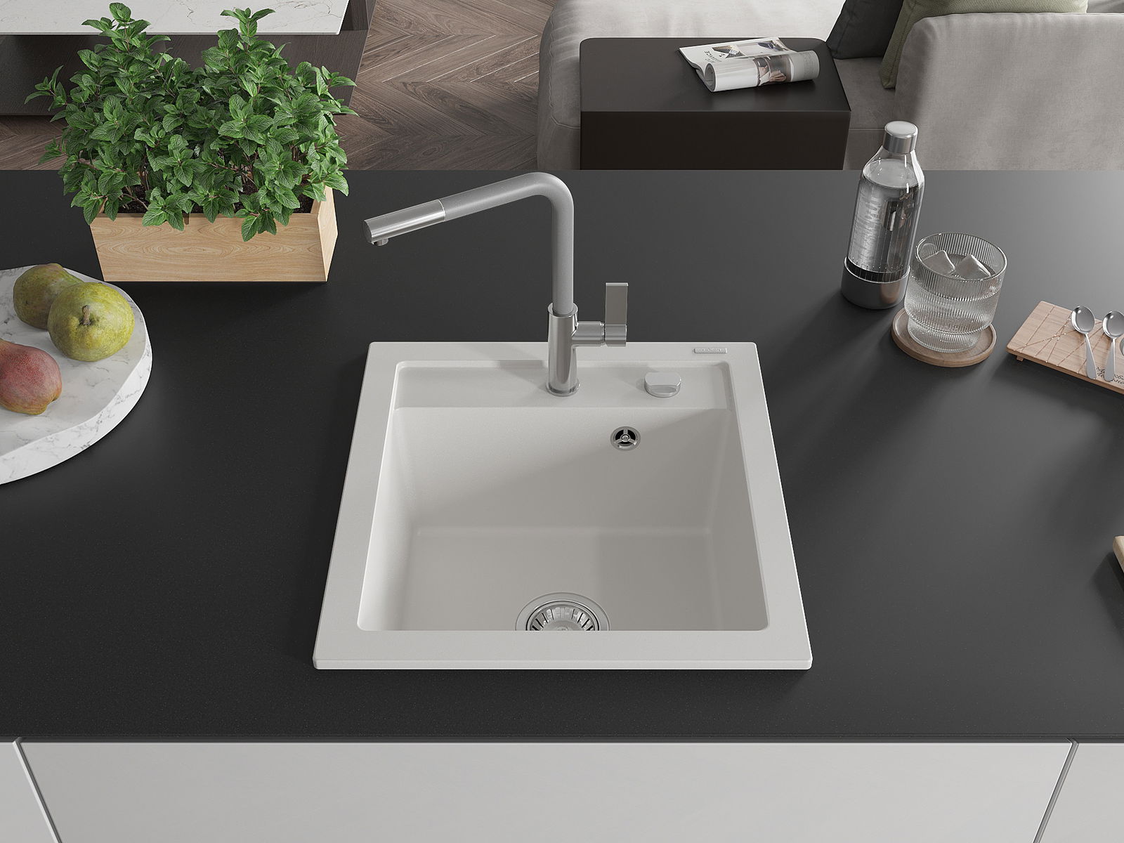 Suprafața chiuvetei este rezistentă la pete și decolorarea, datorită căreia este ușor de curățat și își păstrează culoarea mult timp. Estetică și practic completarea fiecărei bucătării.