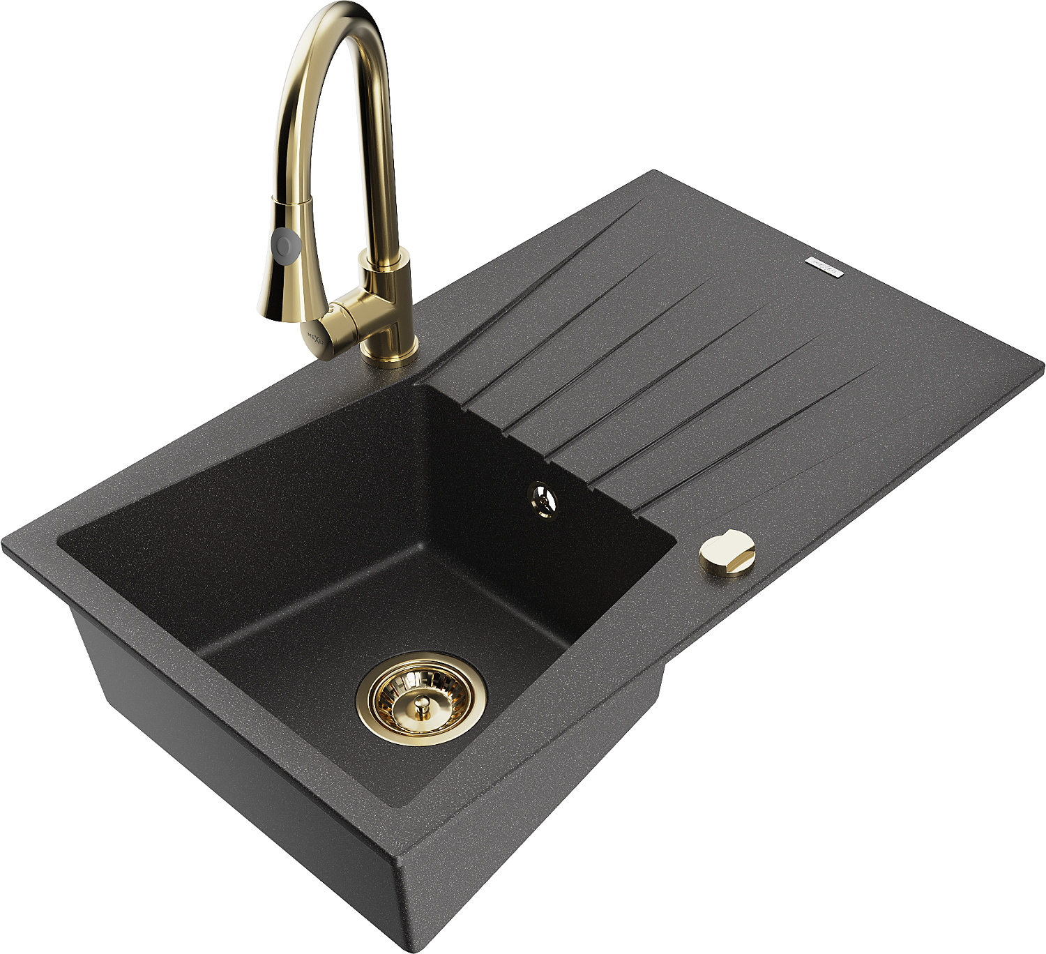 Mexen Cesar chiuvetă de granit cu 1 compartiment, cu scurgător și baterie de bucătărie Elia, negru punctat - 6514-76-670101-50