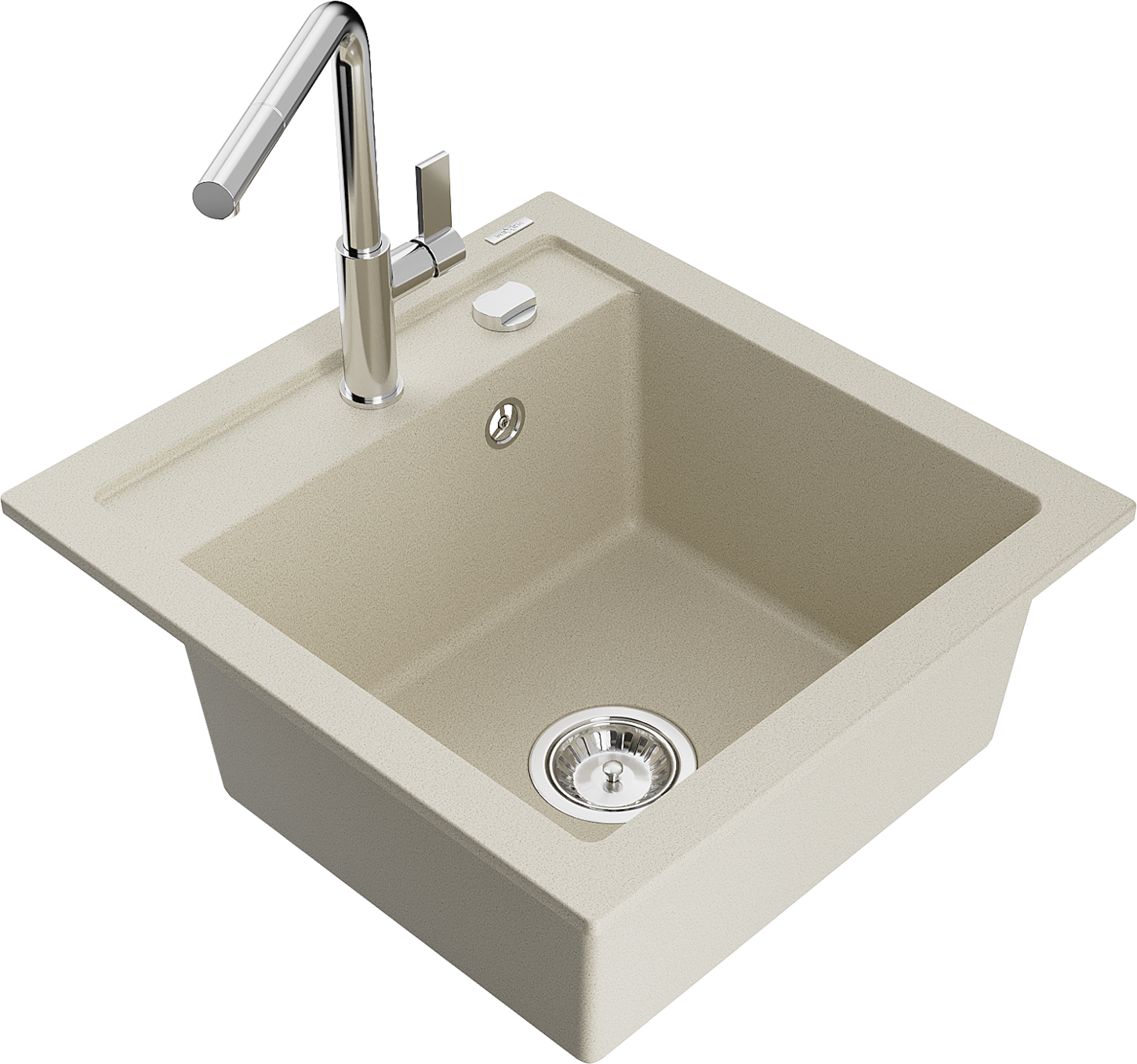 Suprafața chiuvetei este rezistentă la pete și decolorarea, datorită căreia este ușor de curățat și își păstrează culoarea mult timp. Estetică și practic completarea fiecărei bucătării.