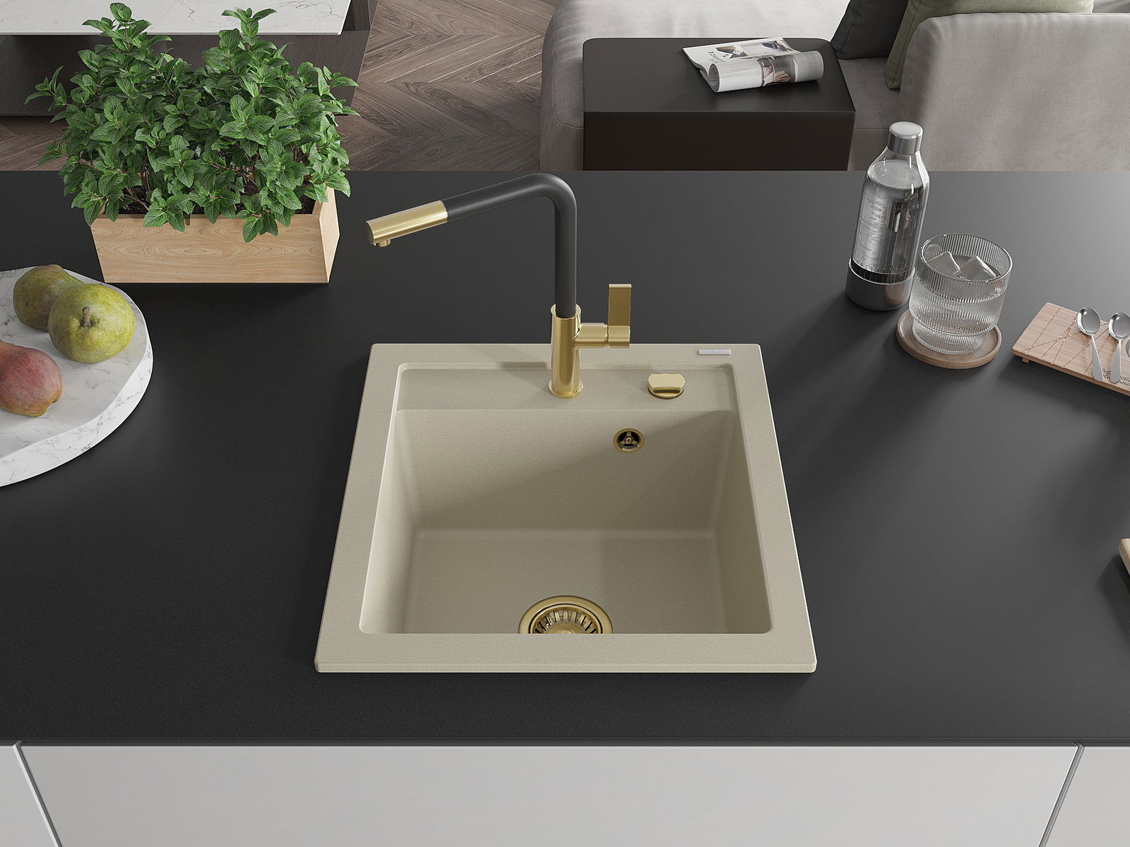Suprafața chiuvetei este rezistentă la pete și decolorarea, datorită căreia este ușor de curățat și își păstrează culoarea mult timp. Estetică și practic completarea fiecărei bucătării.