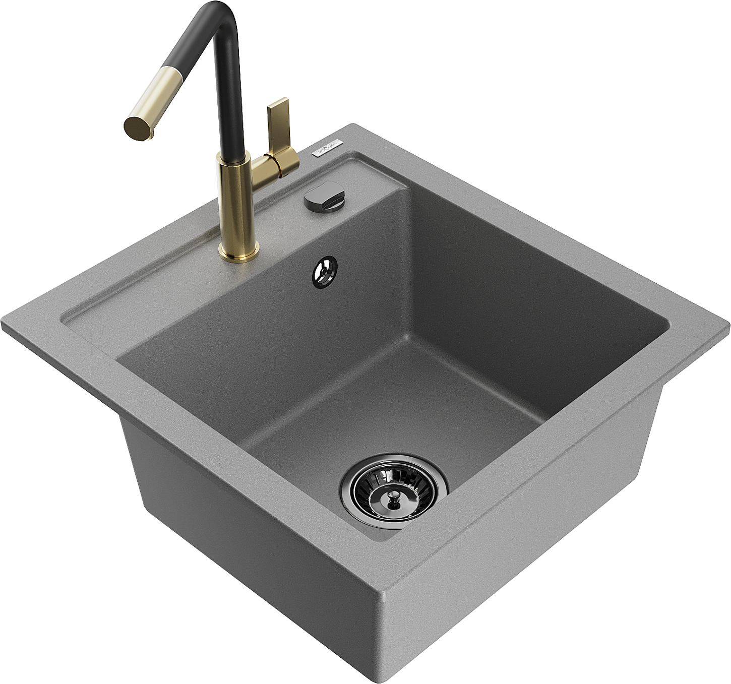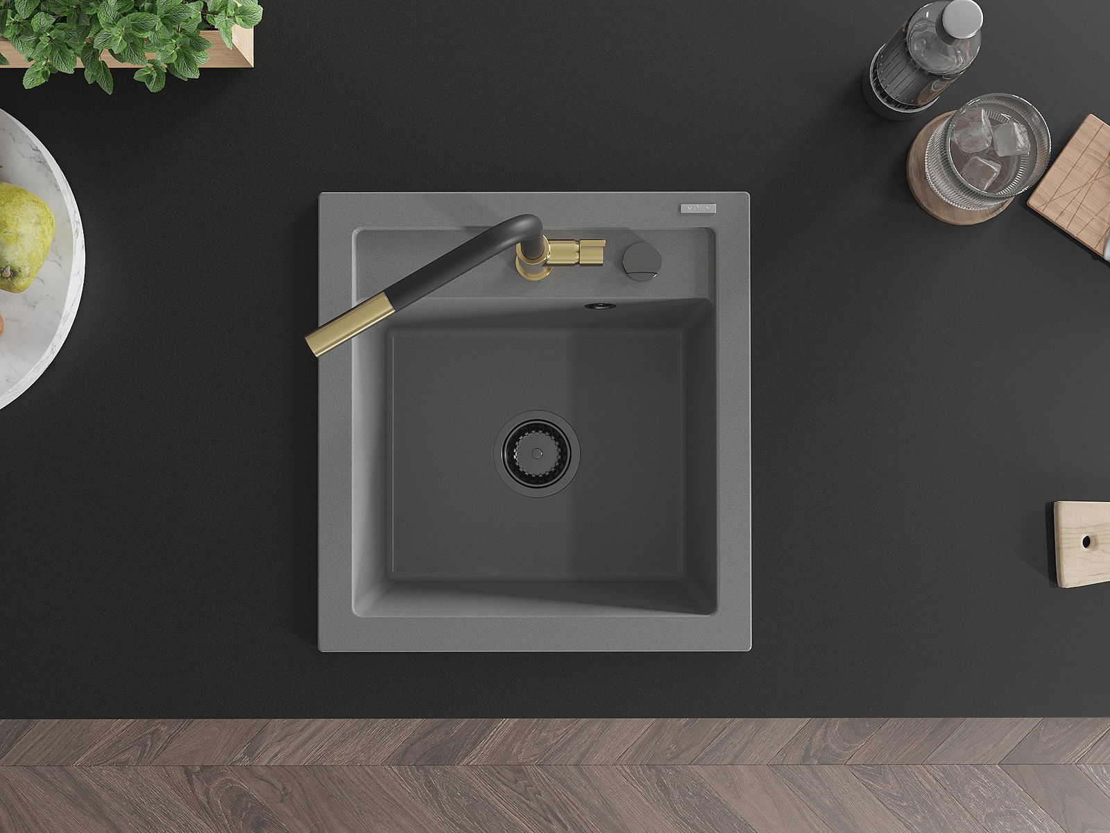 Mexen Vito chiuveta de bucătărie din granit cu 1 compartiment și baterie Flora, gri - 6503-71-670401-57-B
