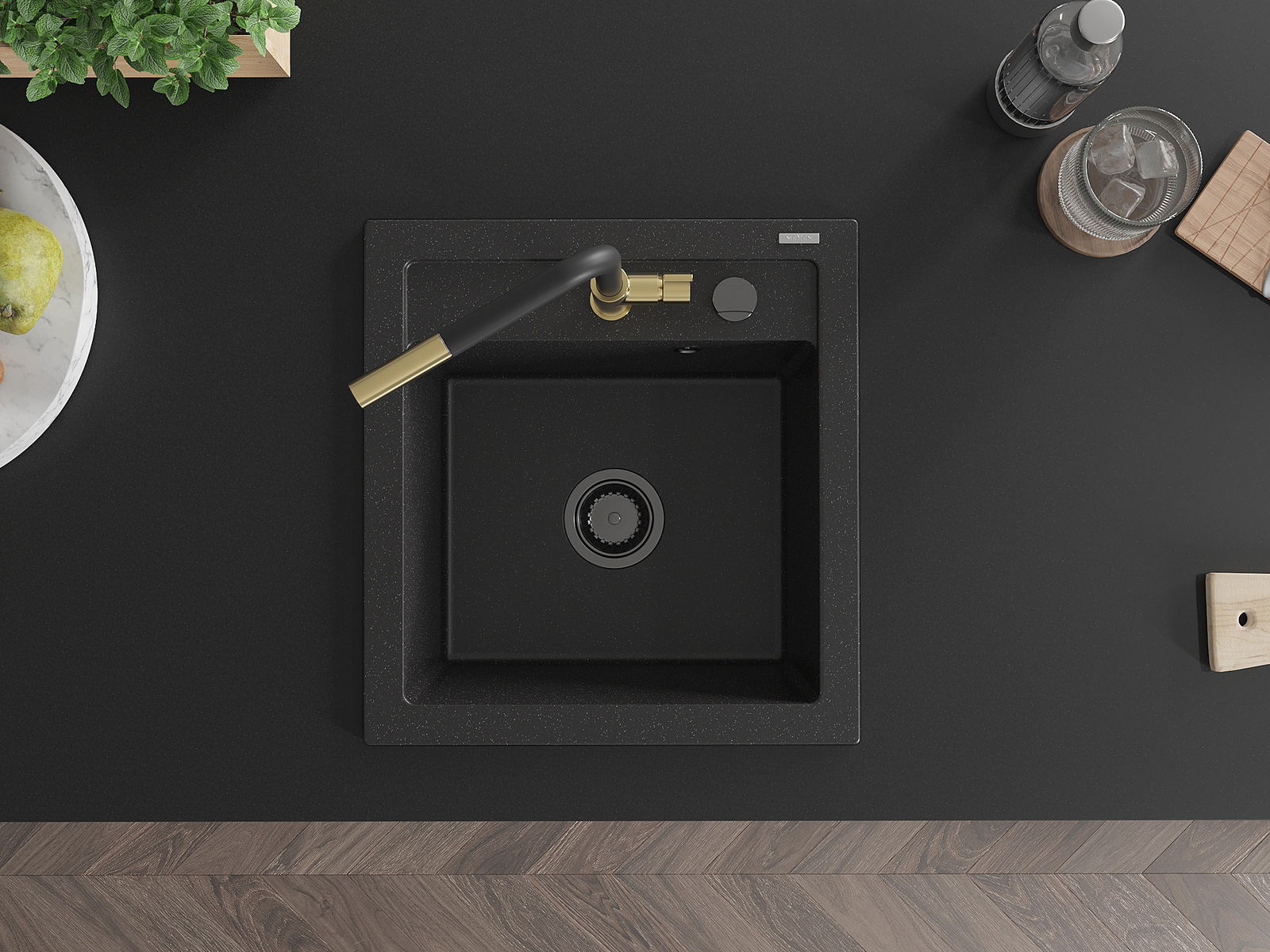 Mexen Vito chiuvetă de granit cu 1 compartiment cu baterie de bucătărie Flora, negru/metalic argintiu - 6503-73-670401-57-B