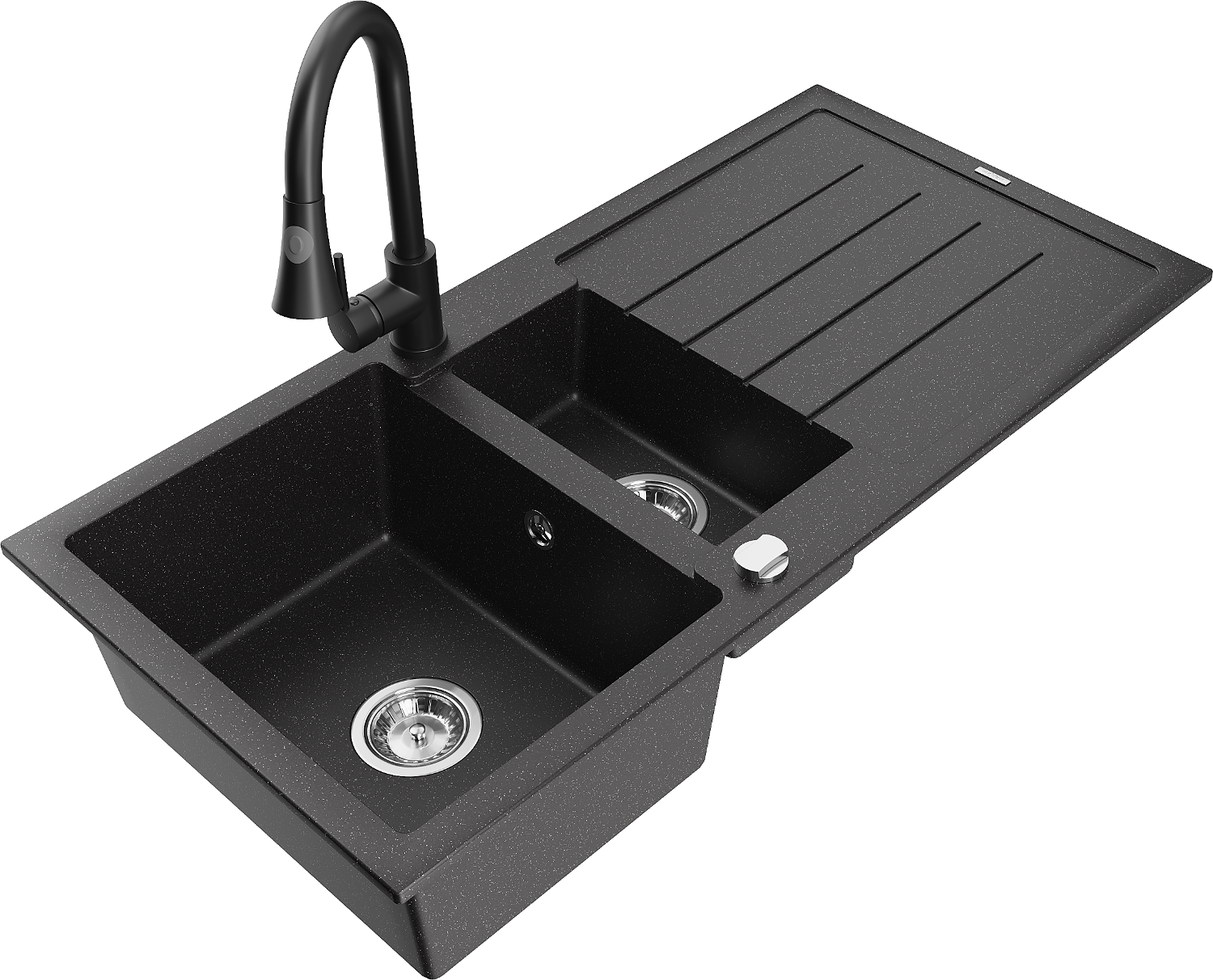 Mexen Andres chiuvetă granit 1,5-cameră cu scurgător și baterie de bucătărie Elia, negru/argintiu metalic - 6515-73-670101-70