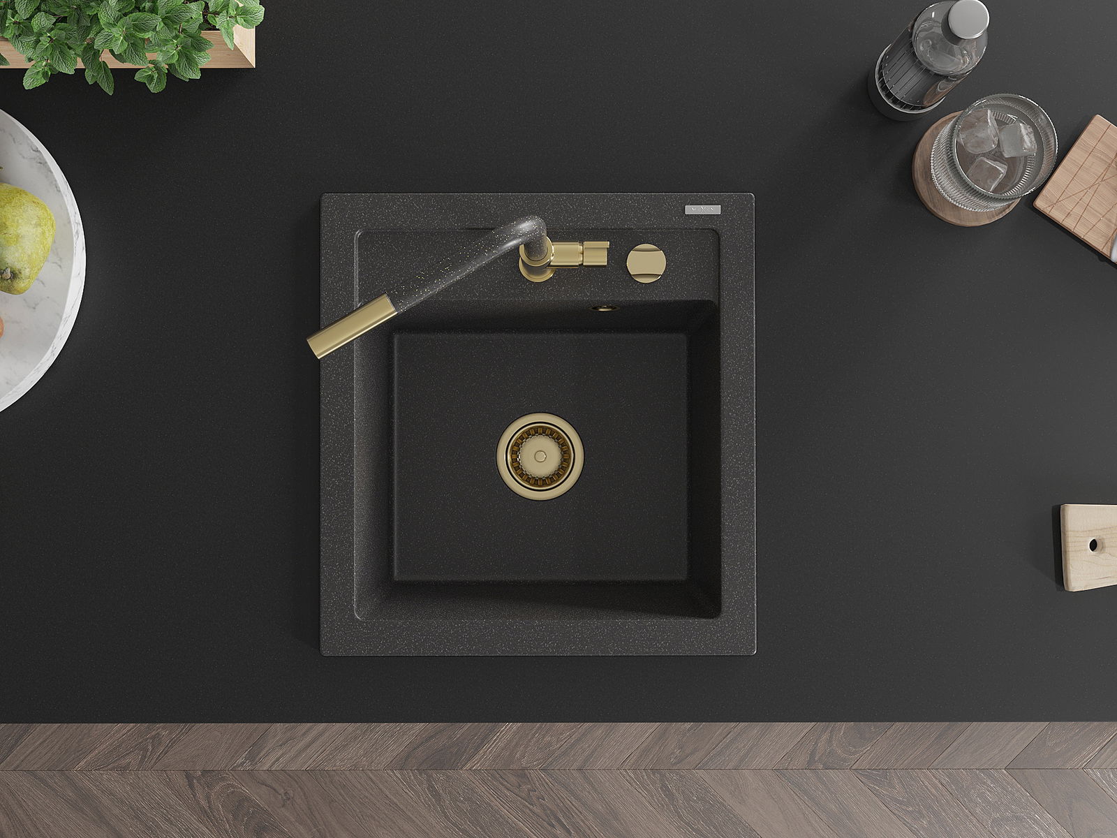 Chiuveta are o gaură prezentată cu un diametru de 35 mm pentru auto -burst. Poate fi folosit, printre altele Pentru montarea unui distribuitor de lichid care va elimina prezența sticlelor de plastic în bucătărie și îi va oferi un finisaj elegant.