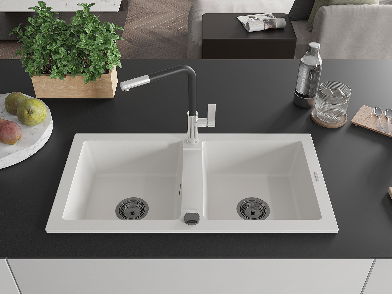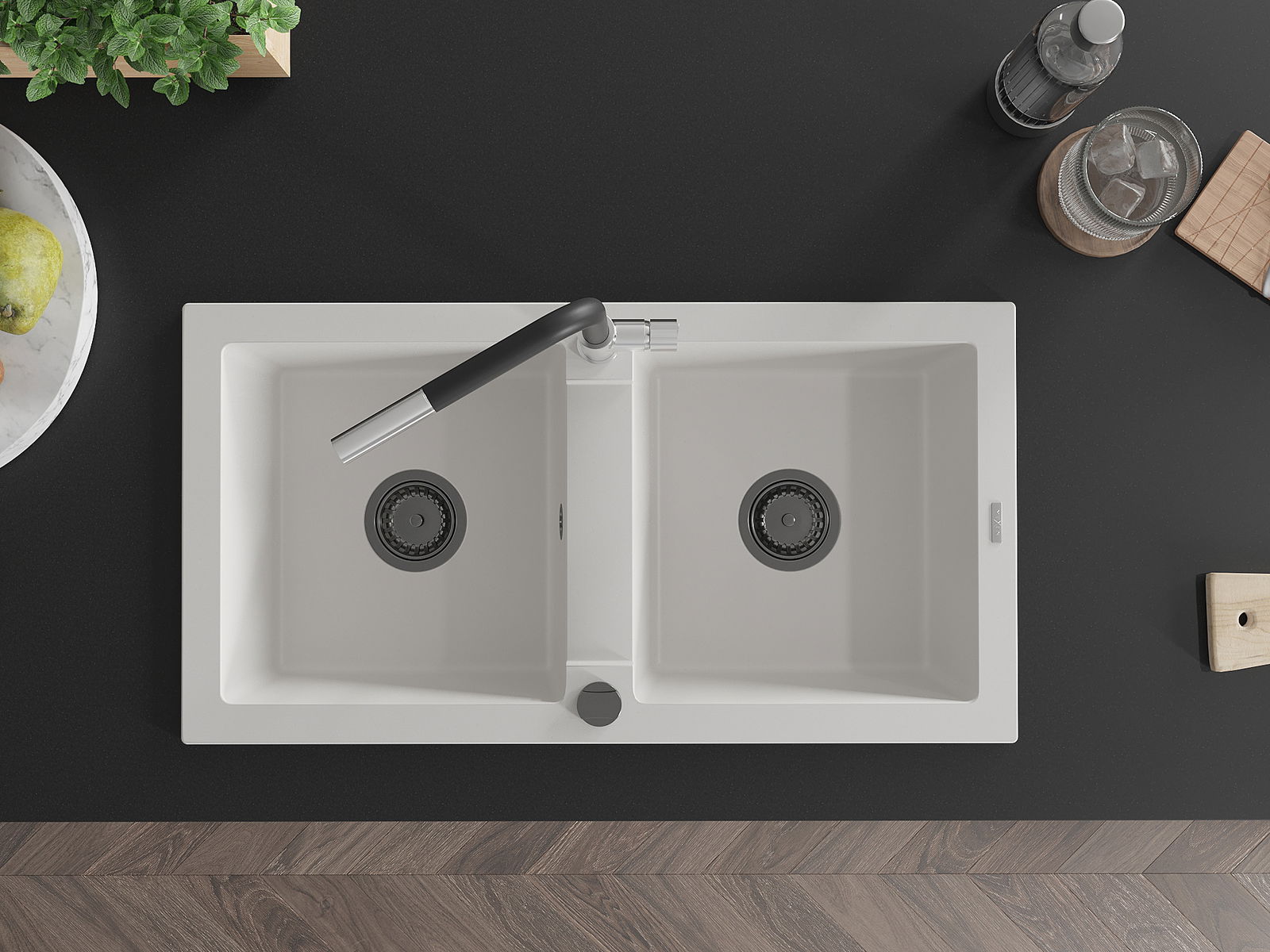 Suprafața chiuvetei este rezistentă la pete și decolorarea, datorită căreia este ușor de curățat și își păstrează culoarea mult timp. Estetică și practic completarea fiecărei bucătării.