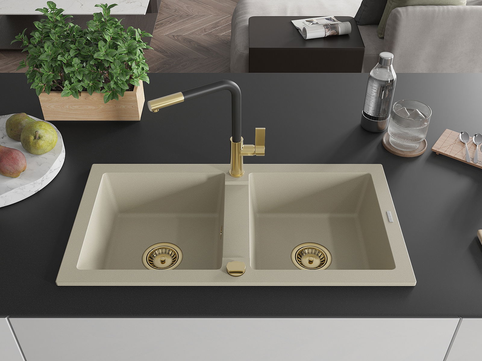 Suprafața chiuvetei este rezistentă la pete și decolorarea, datorită căreia este ușor de curățat și își păstrează culoarea mult timp. Estetică și practic completarea fiecărei bucătării.