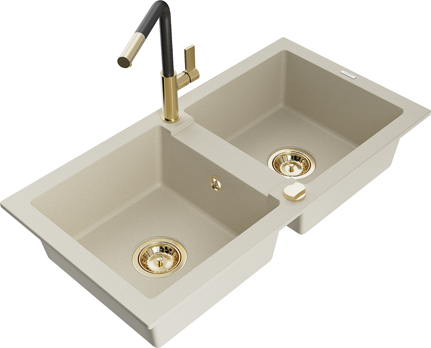 Mexen Mario chiuvetă de bucătărie din granit cu 2 compartimente și baterie Flora, bej - 6504-69-670401-57-G