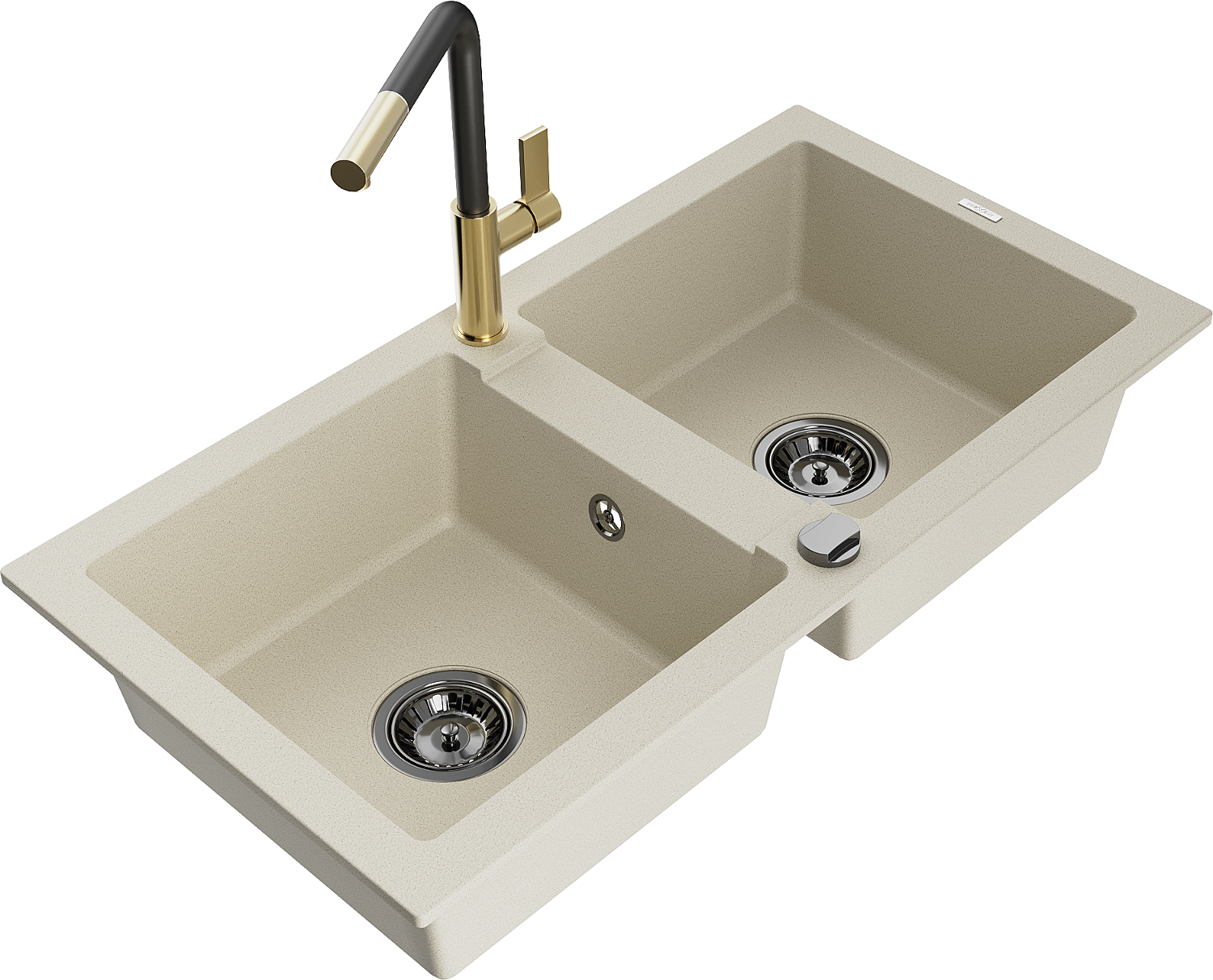 Mexen Mario chiuvetă din granit cu 2 compartimente și baterie de bucătărie Flora, bej - 6504-69-670401-57-B