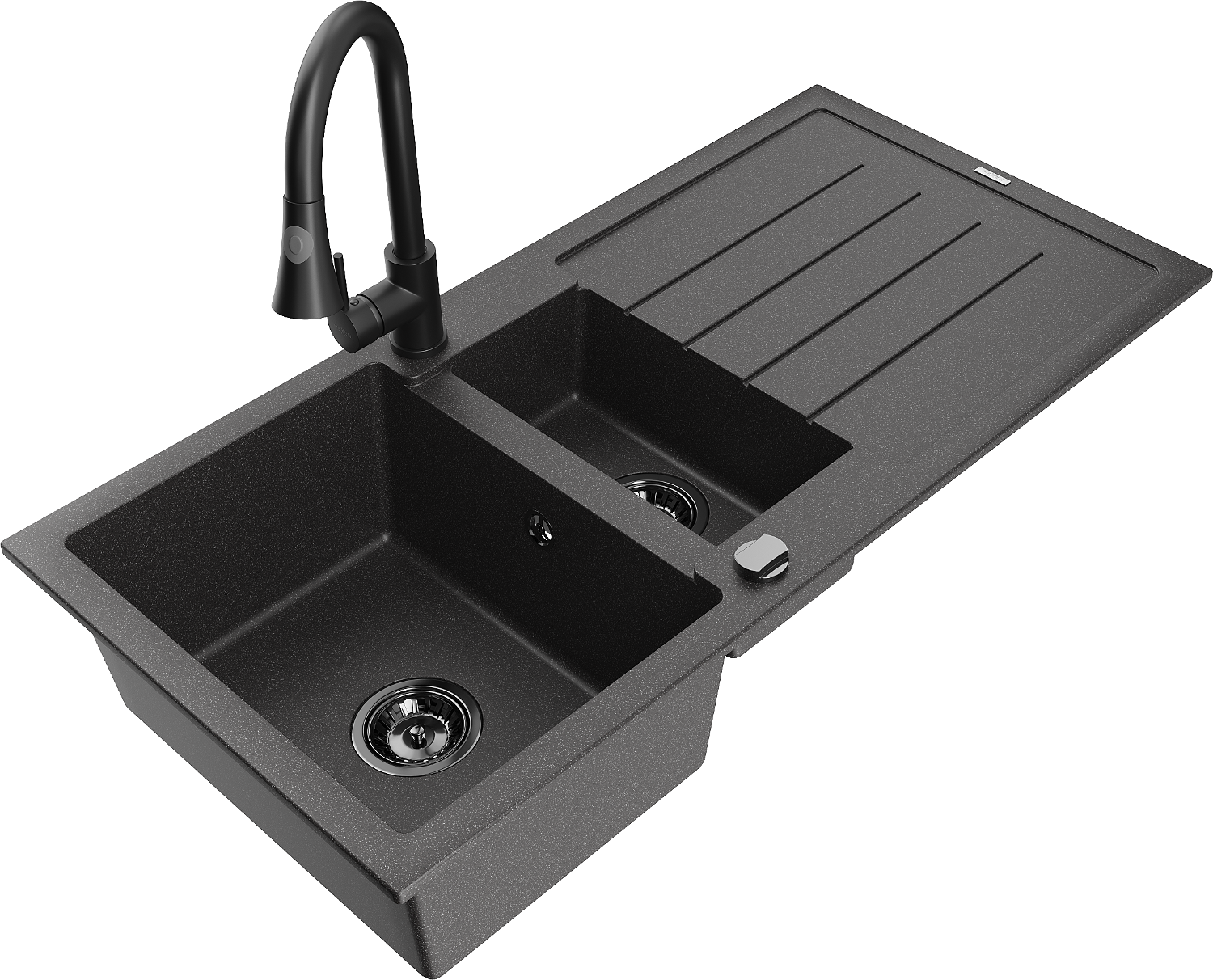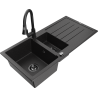 Mexen Andres chiuvetă din granit 1,5 compartimente cu scurgător și baterie de bucătărie Elia, negru pătat