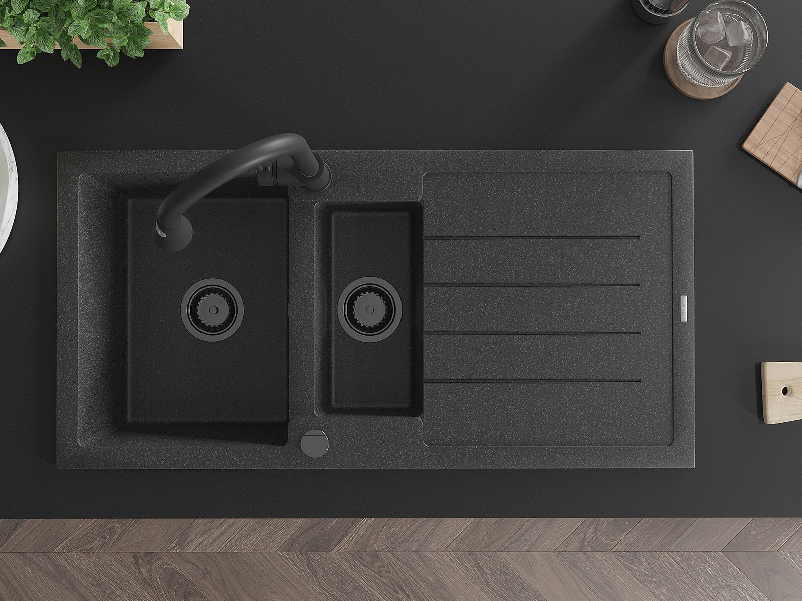 Chiuveta a fost realizată din granit de înaltă calitate. Reprezintă un complement elegant și, mai presus de toate, practic pentru orice bucătărie, indiferent de stilul acesteia. Calitatea înaltă și durabilitatea granitului asigură o utilizare de lungă durată.