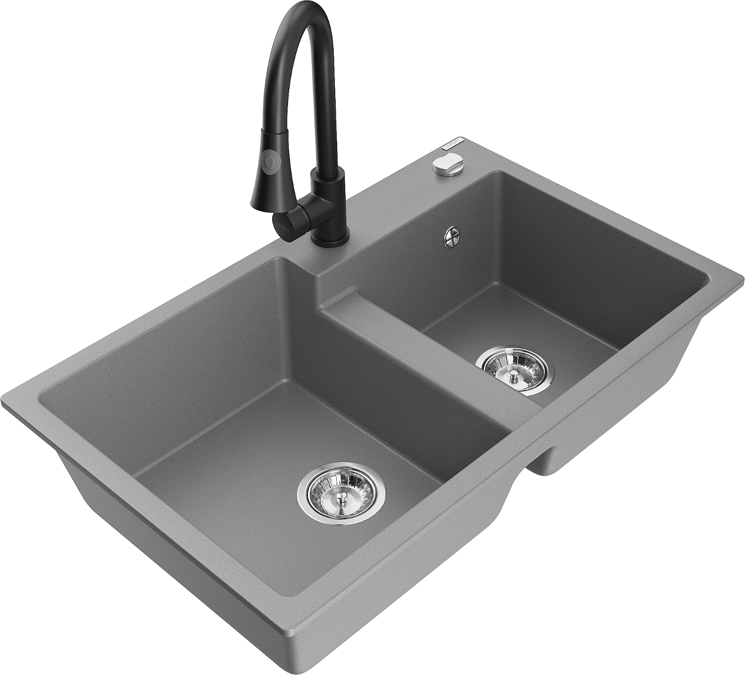 Mexen Tomas chiuvetă de granit cu 2 camere cu baterie de bucătărie Elia, gri - 6516-71-670101-70