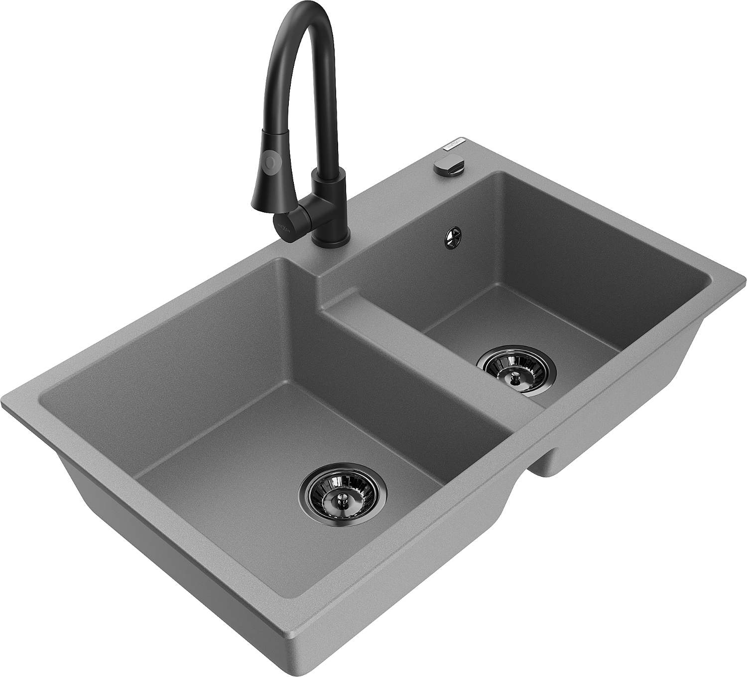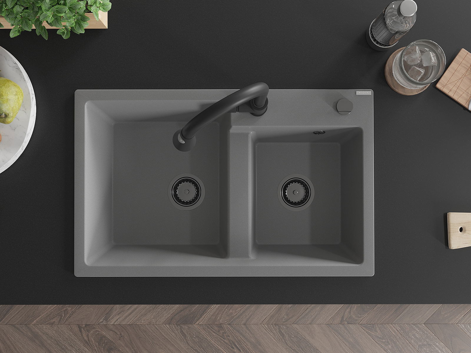 Mexen Tomas chiuvetă de bucătărie granit 2 camere cu baterie bucătărie Elia, gri - 6516-71-670101-70-B