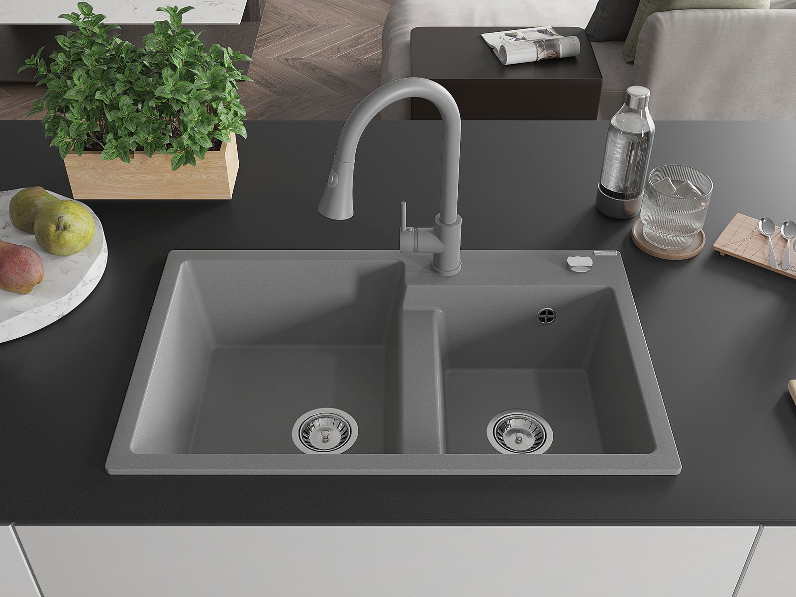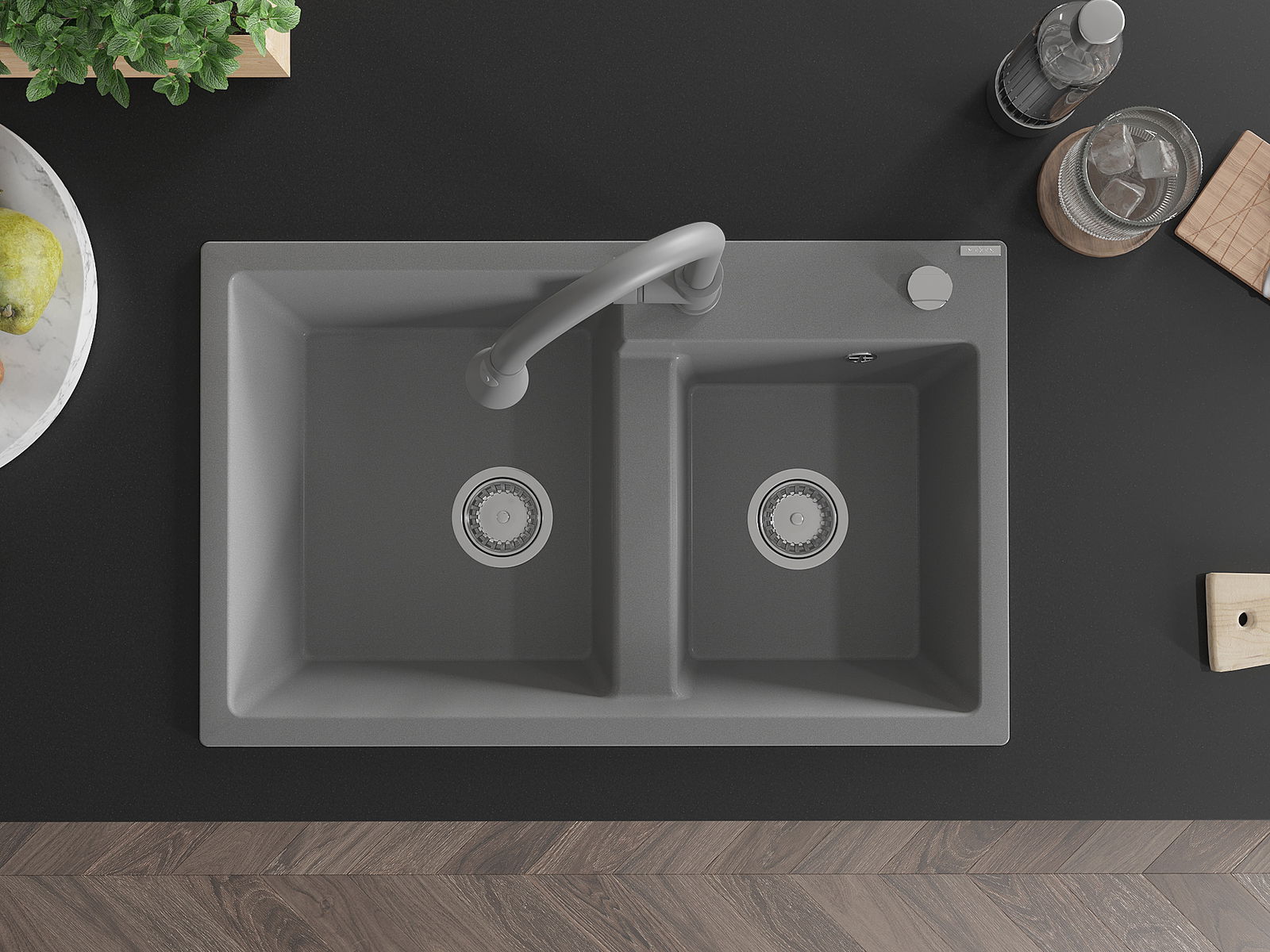 Suprafața chiuvetei este rezistentă la pete și decolorarea, datorită căreia este ușor de curățat și își păstrează culoarea mult timp. Estetică și practic completarea fiecărei bucătării.
