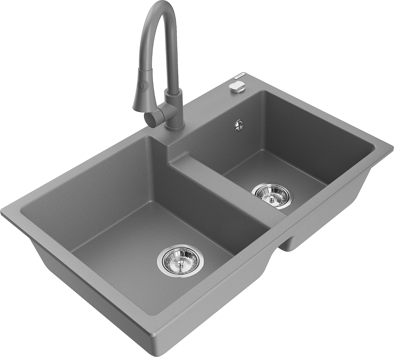 Mexen Tomas chiuvetă de bucătărie din granit cu 2 compartimente și baterie de bucătărie Elia, gri - 6516-71-670101-71