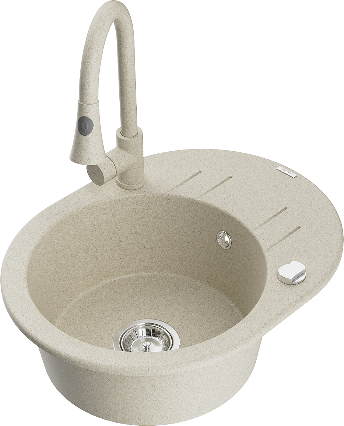 Suprafața chiuvetei este rezistentă la pete și decolorarea, datorită căreia este ușor de curățat și își păstrează culoarea mult timp. Estetică și practic completarea fiecărei bucătării.
