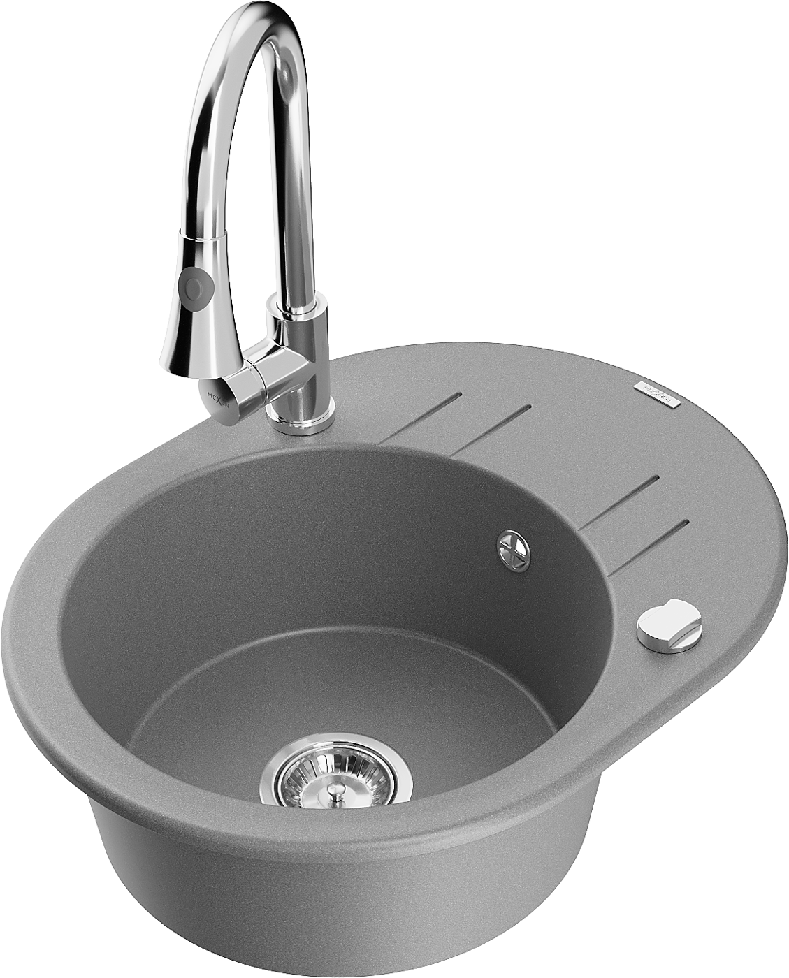 Mexen Kevin chiuvetă de granit cu 1 compartiment cu scurgător și baterie de bucătărie Elia, gri - 6517-71-670101-00