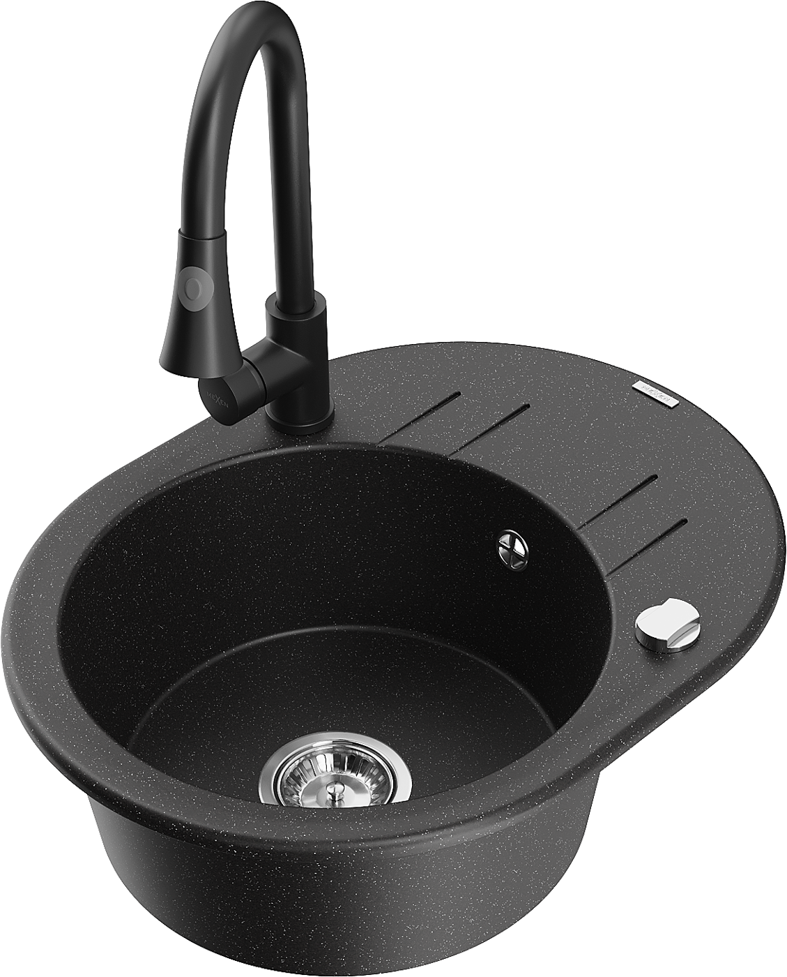 Mexen Kevin chiuvetă granitică 1-cameră cu scurgător și baterie de bucătărie Elia, negru/argintiu metalic - 6517-73-670101-70