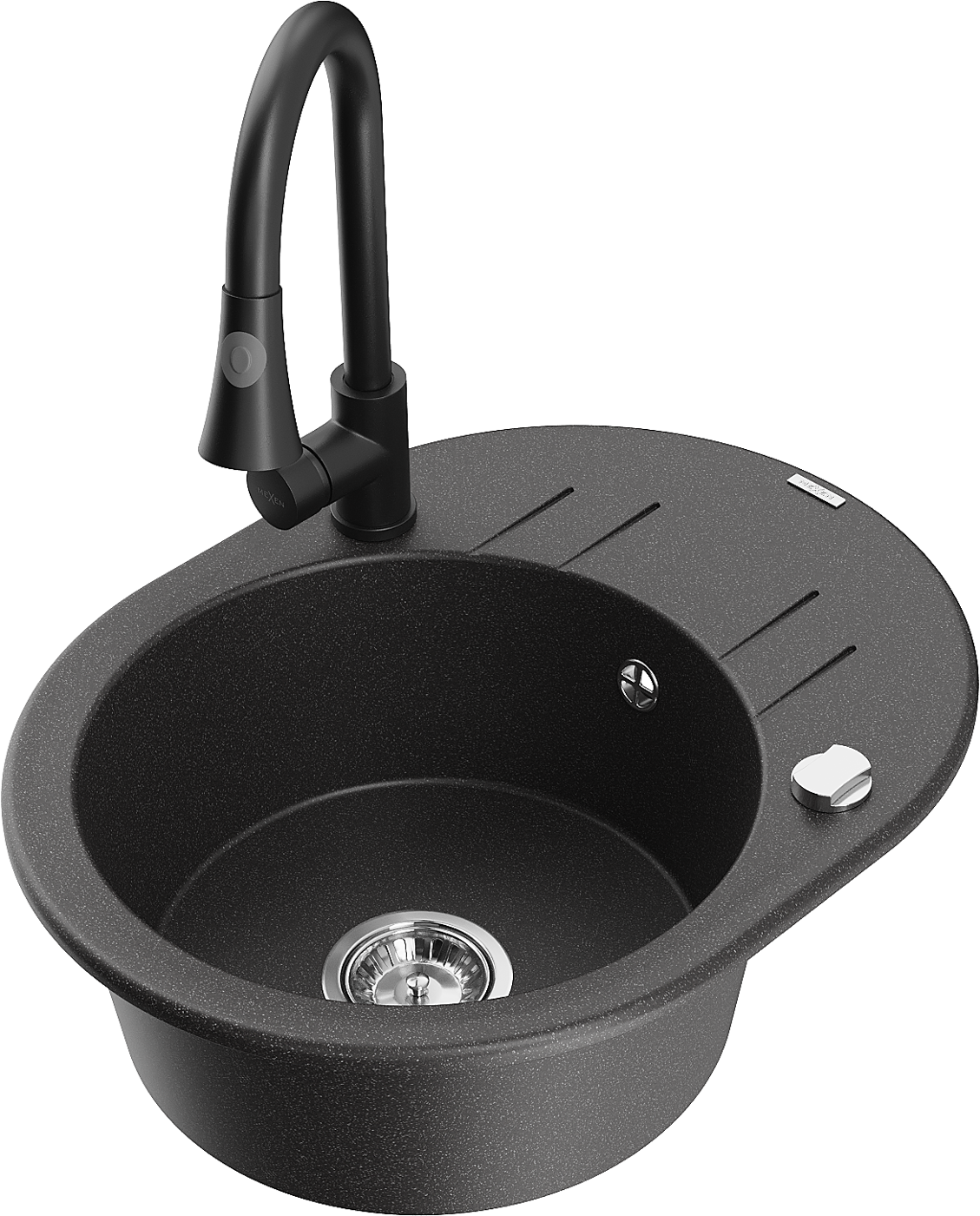 Mexen Kevin chiuvetă de bucătărie din granit cu 1 compartiment cu scurgător și baterie de bucătărie Elia, negru stropit - 6517-?