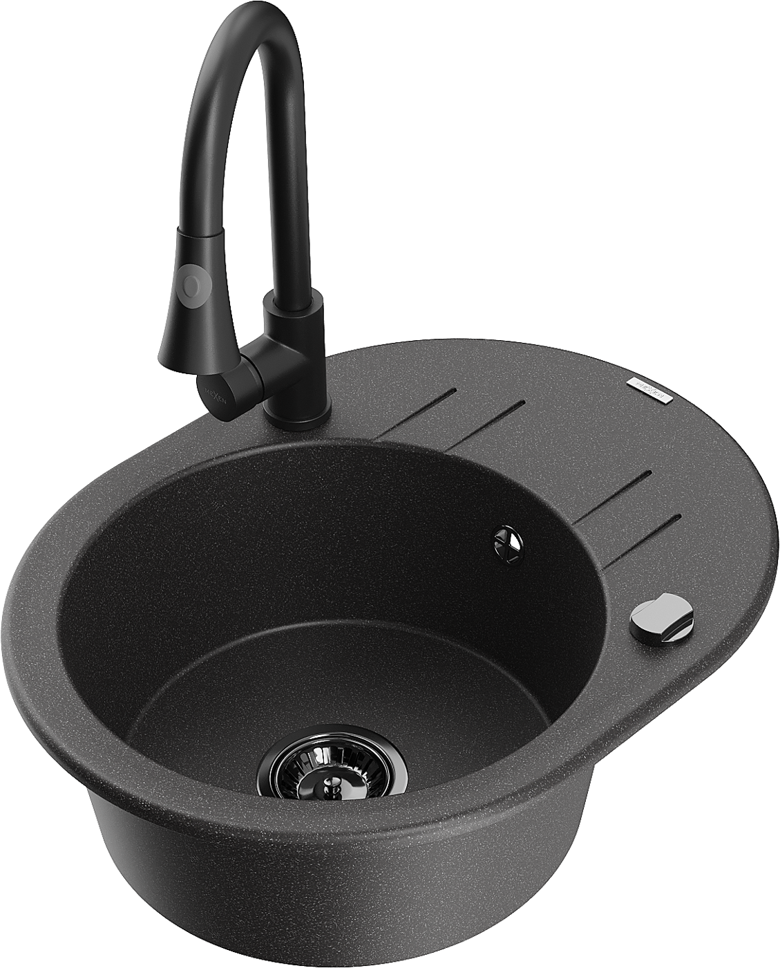 Mexen Kevin chiuvetă de bucătărie din granit cu 1 compartiment și scurgător, cu baterie de bucătărie Elia, negru cu pete - 6517?