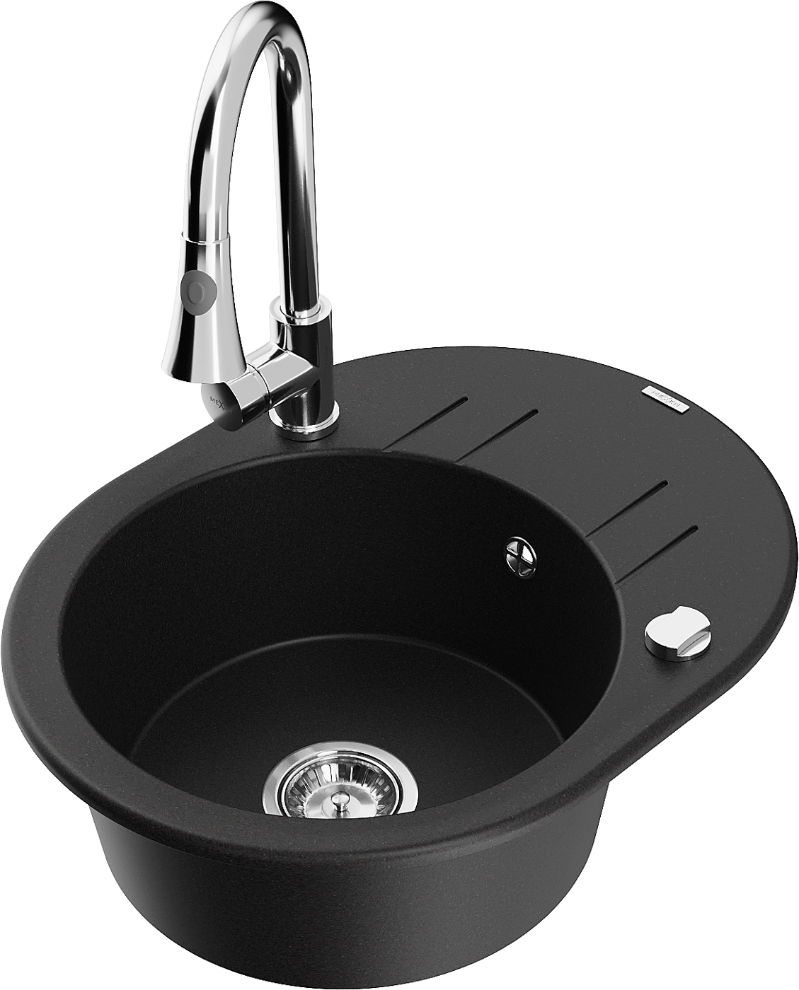 Mexen Kevin chiuvetă de granit cu o cuvă și scurgător cu baterie de bucătărie Elia, negru - 6517-77-670101-00