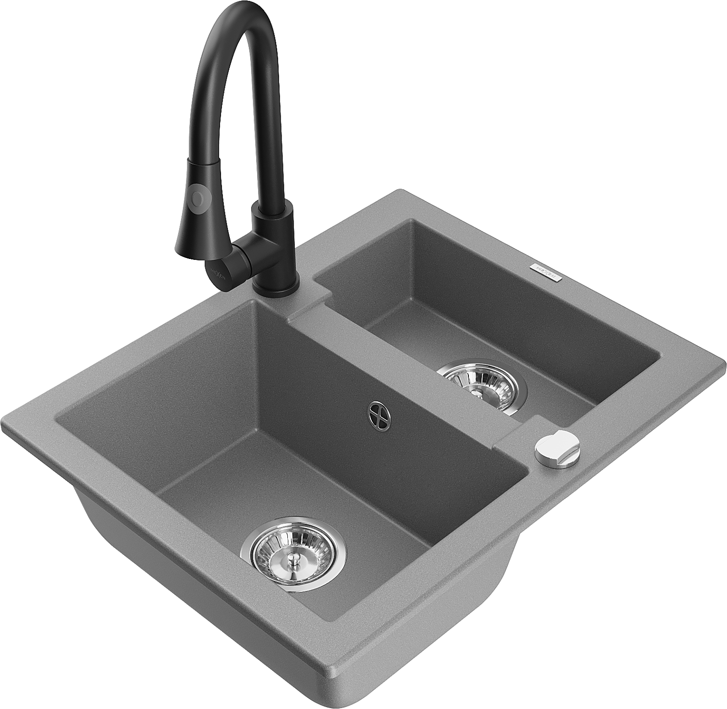 Mexen Carlos chiuvetă granit 1,5 cămăruțe cu baterie de bucătărie Elia, gri - 6518-71-670101-70