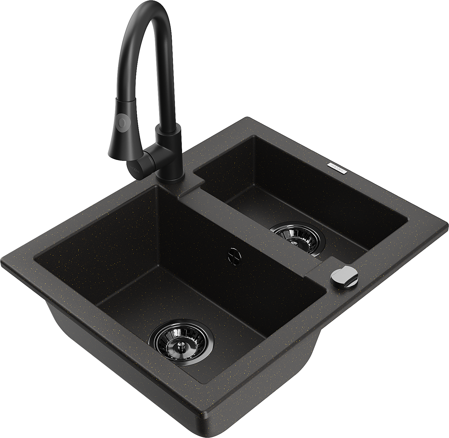 Mexen Carlos chiuvetă din granit cu 1,5 camere cu baterie de bucătărie Elia, negru/auriu metalizat - 6518-75-670101-70-B