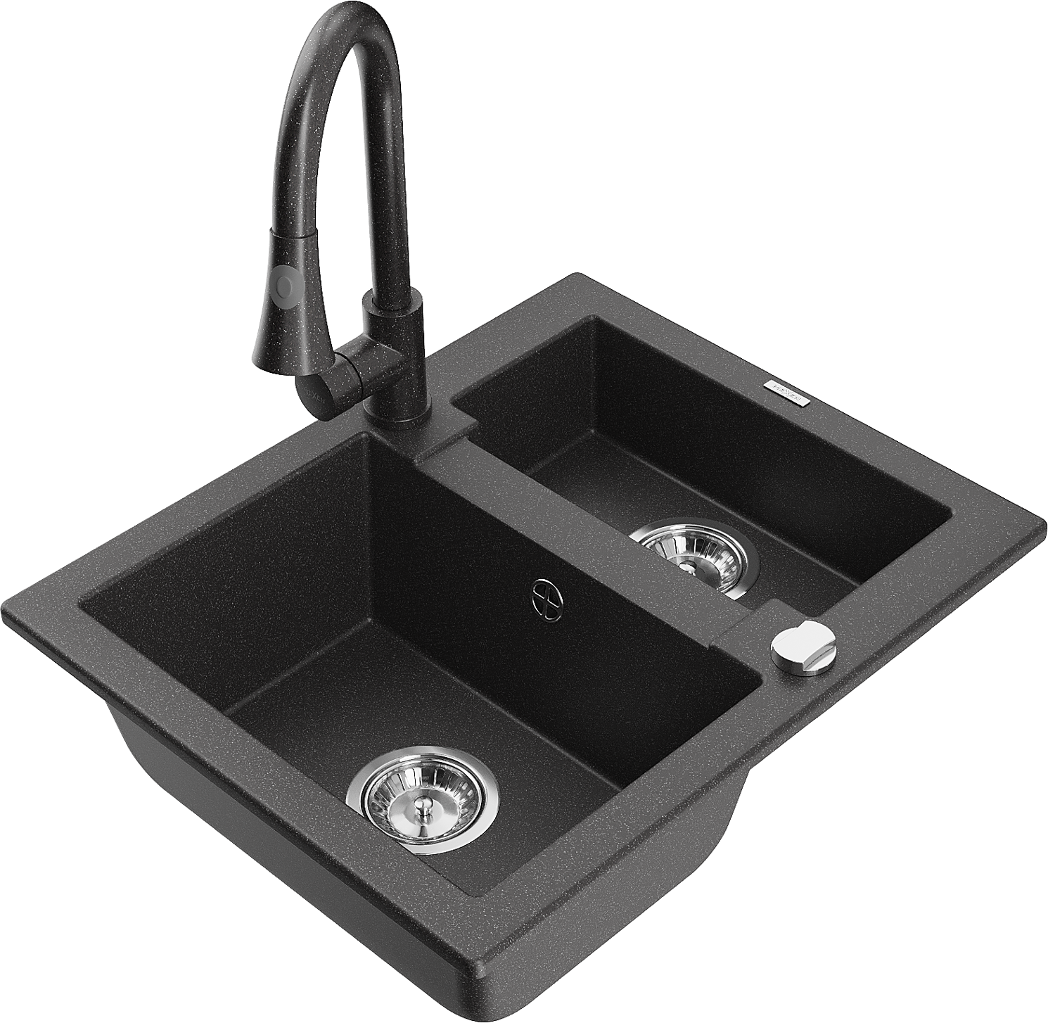 Mexen Carlos chiuvetă de granit cu 1,5 compartimente cu baterie de bucătărie Elia, negru cu pete - 6518-76-670101-76