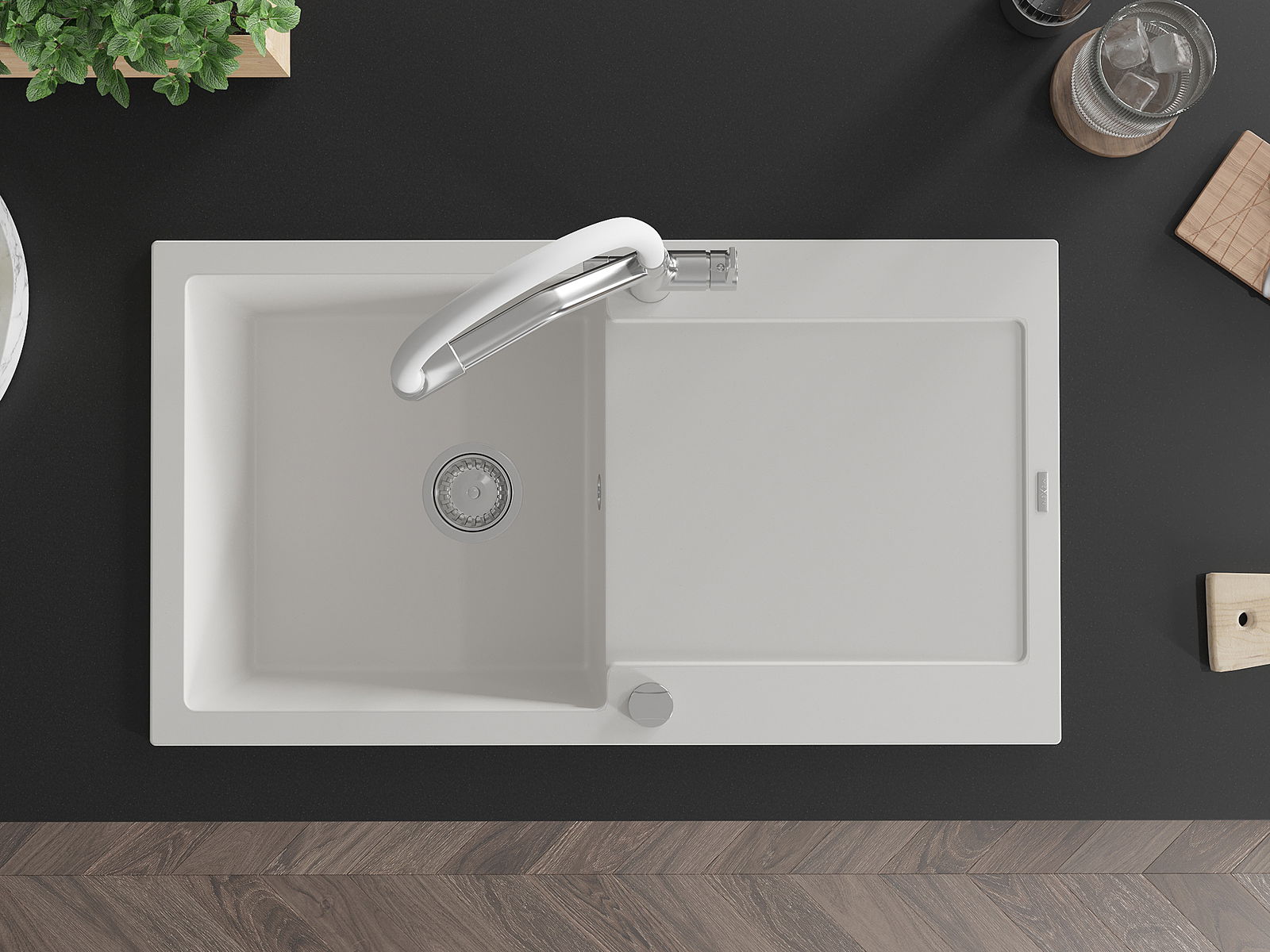 Datorită sistemului de montare universală, chiuveta este reversibilă, iar scurgerea poate fi montată pe blat la stânga sau la dreapta. În acest fel, puteți ajusta cu ușurință pagina la nevoile și condițiile dvs.