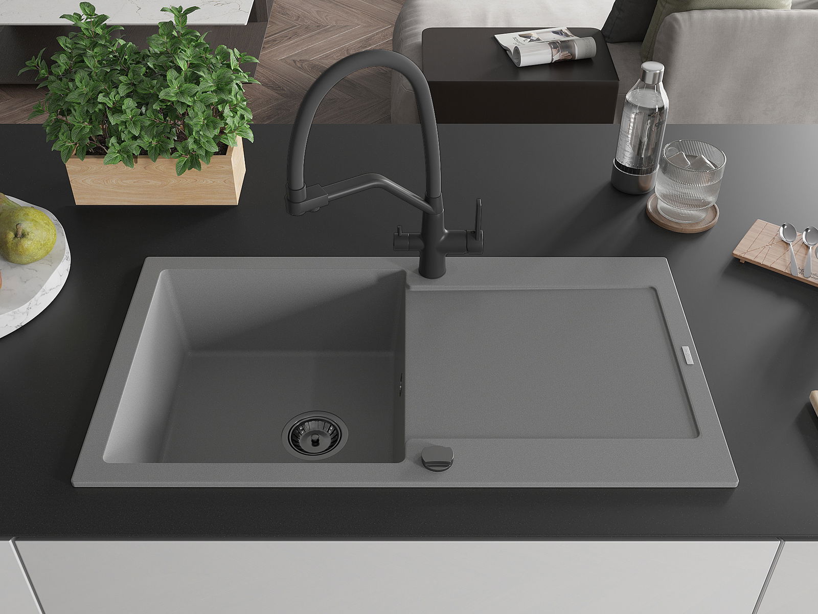 Chiuveta a fost realizată din granit de înaltă calitate. Reprezintă un complement elegant și, mai presus de toate, practic pentru orice bucătărie, indiferent de stilul acesteia. Calitatea înaltă și durabilitatea granitului asigură o utilizare de lungă durată.