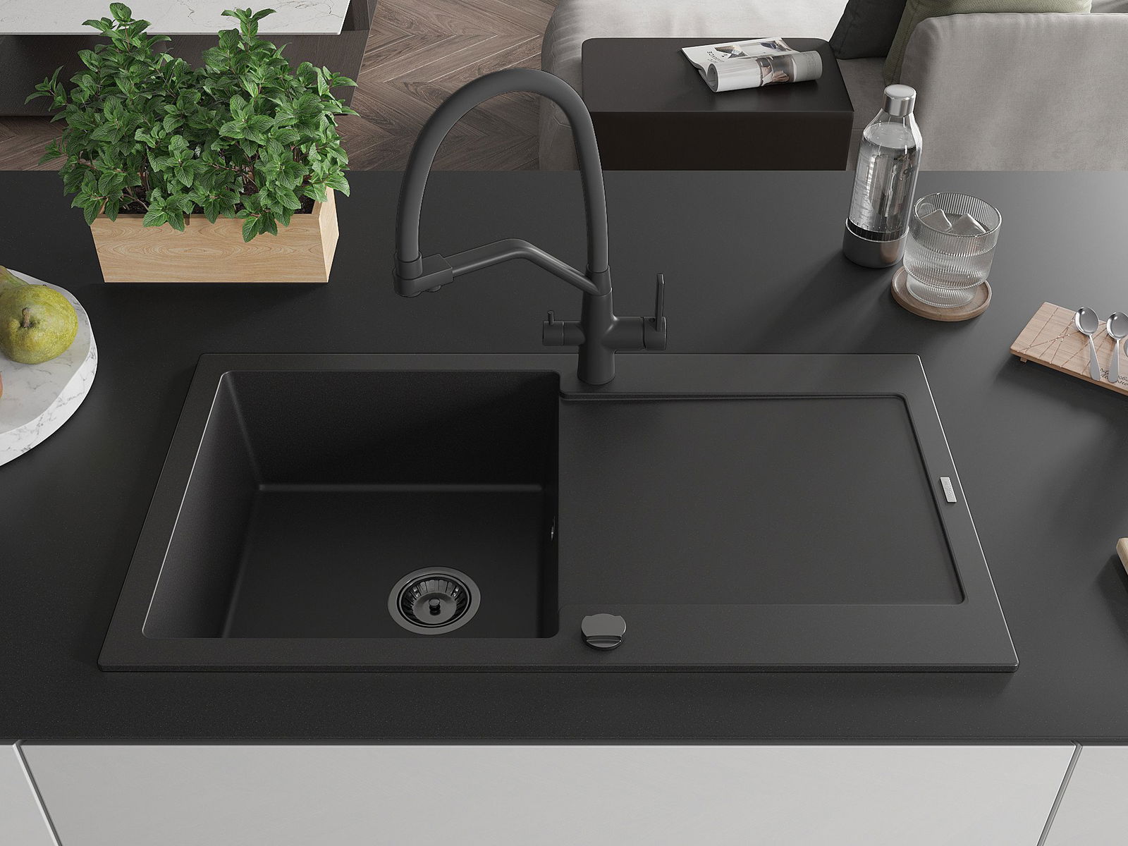 Suprafața chiuvetei este rezistentă la pete și decolorarea, datorită căreia este ușor de curățat și își păstrează culoarea mult timp. Estetică și practic completarea fiecărei bucătării.