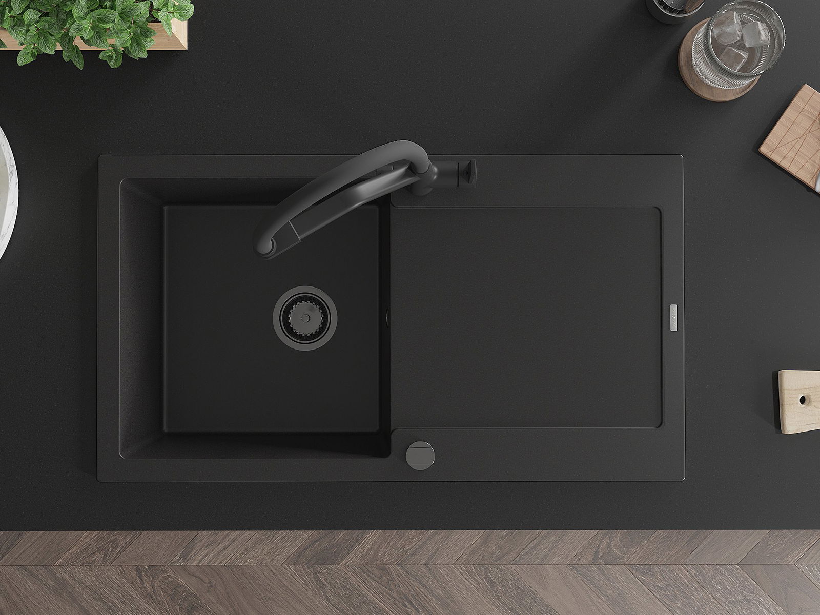 Datorită sistemului de montare universală, chiuveta este reversibilă, iar scurgerea poate fi montată pe blat la stânga sau la dreapta. În acest fel, puteți ajusta cu ușurință pagina la nevoile și condițiile dvs.