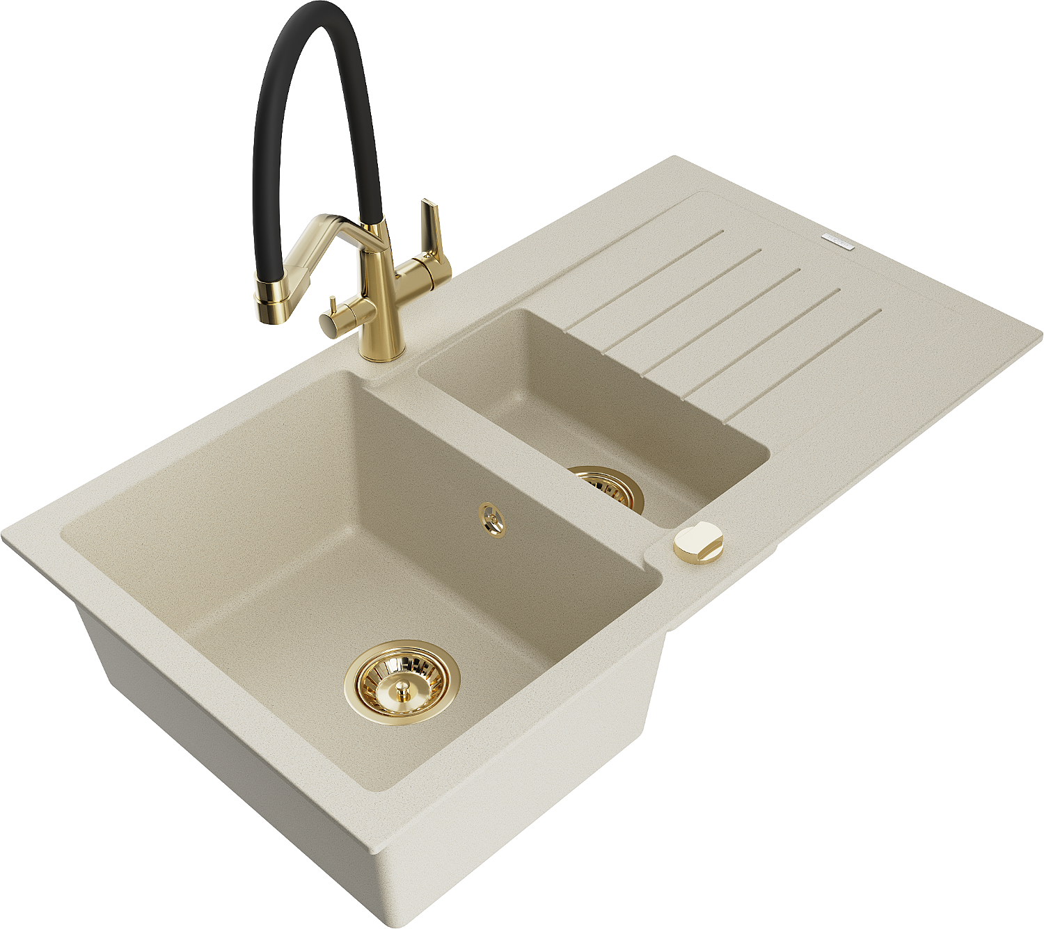Mexen Matias chiuvetă granit cu 1,5 compartimente cu scurgător și baterie de bucătărie Duo, bej - 6502-69-671701-57-G