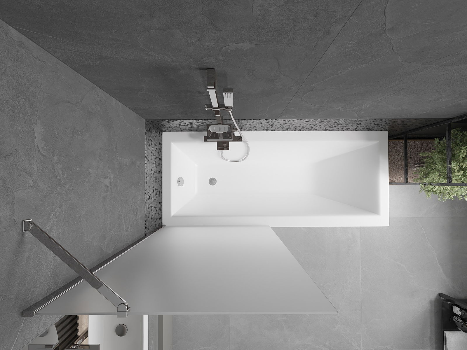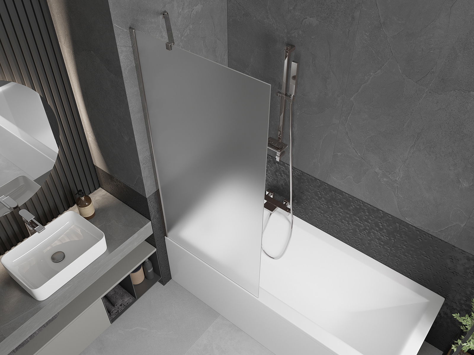 O protecție eficientă împotriva vărsării apei în timpul băii. Paravanul are garnituri care se potrivesc perfect cu suprafața de sticlă și marginea căzii. O soluție funcțională care asigură siguranță și întreținere ușoară a curățeniei.