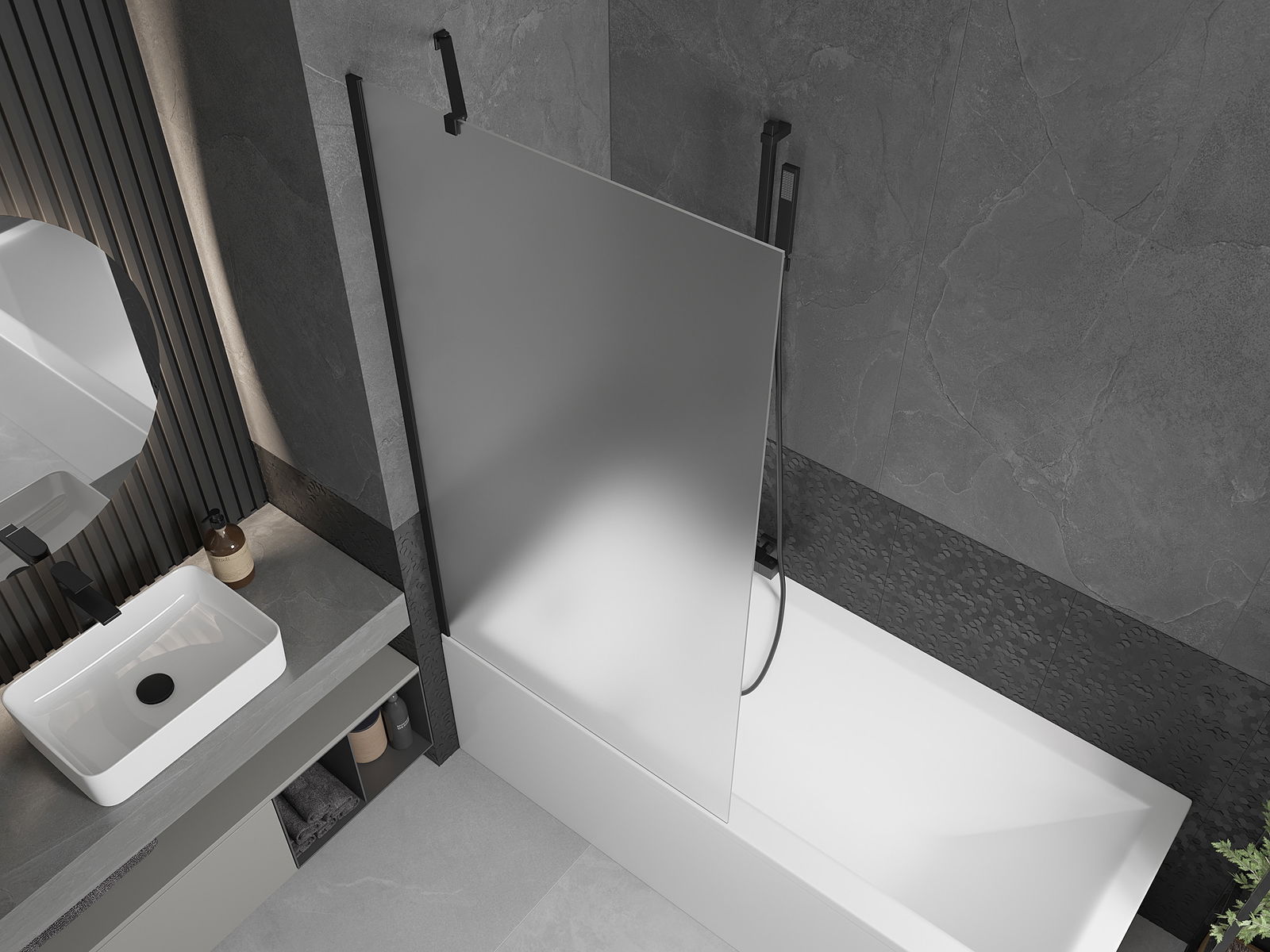Protecție eficientă împotriva vărsării apei în timpul scăldării. Ecranul are sigilii care se adaptează perfect la sticla din sticlă și marginea carii. O soluție funcțională care asigură siguranță și întreținere ușoară.