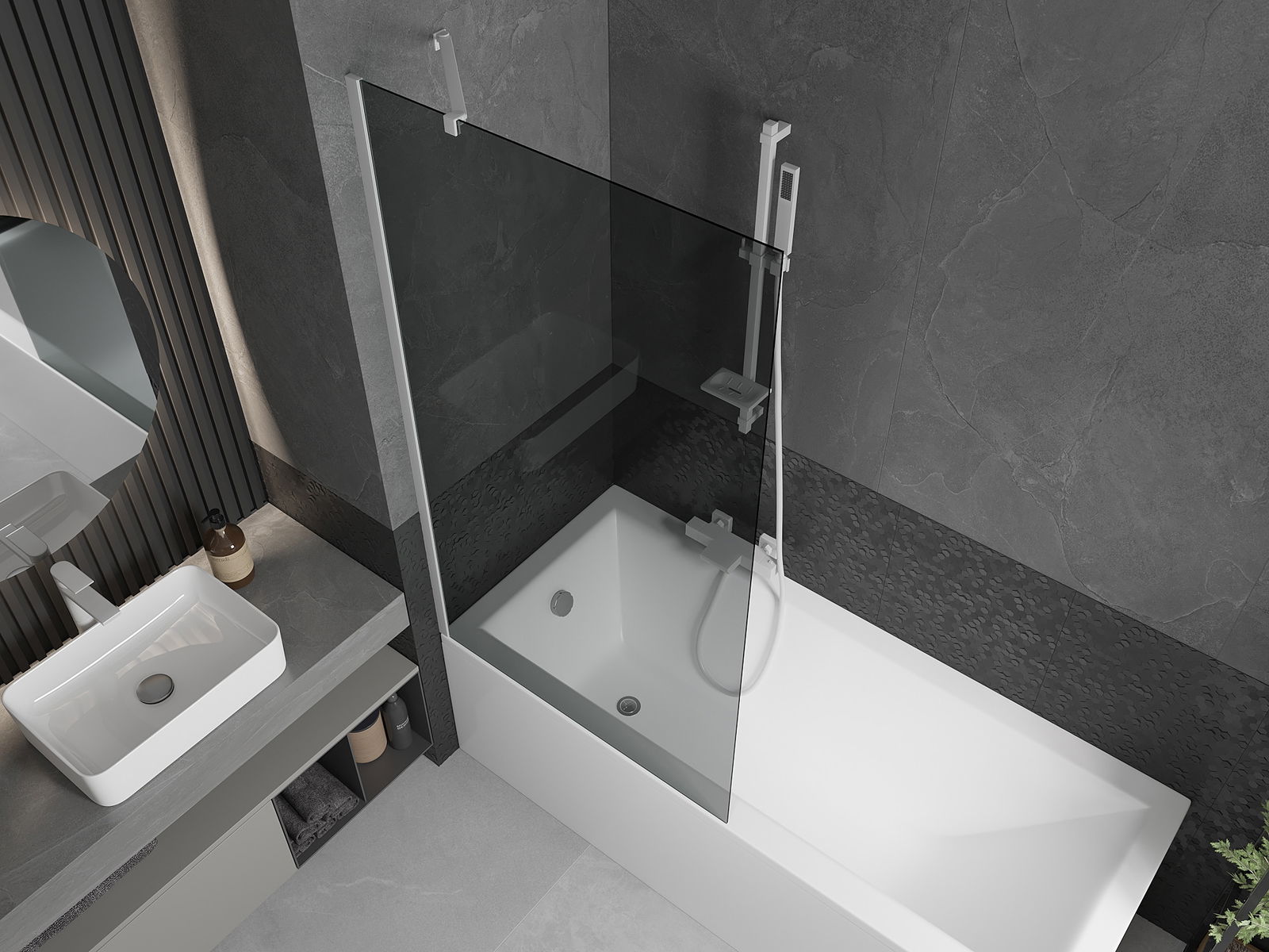 Mexen Next paravan pentru cadă 1-canat 90 x 150 cm, grafit, alb - 895-090-000-00-40-20