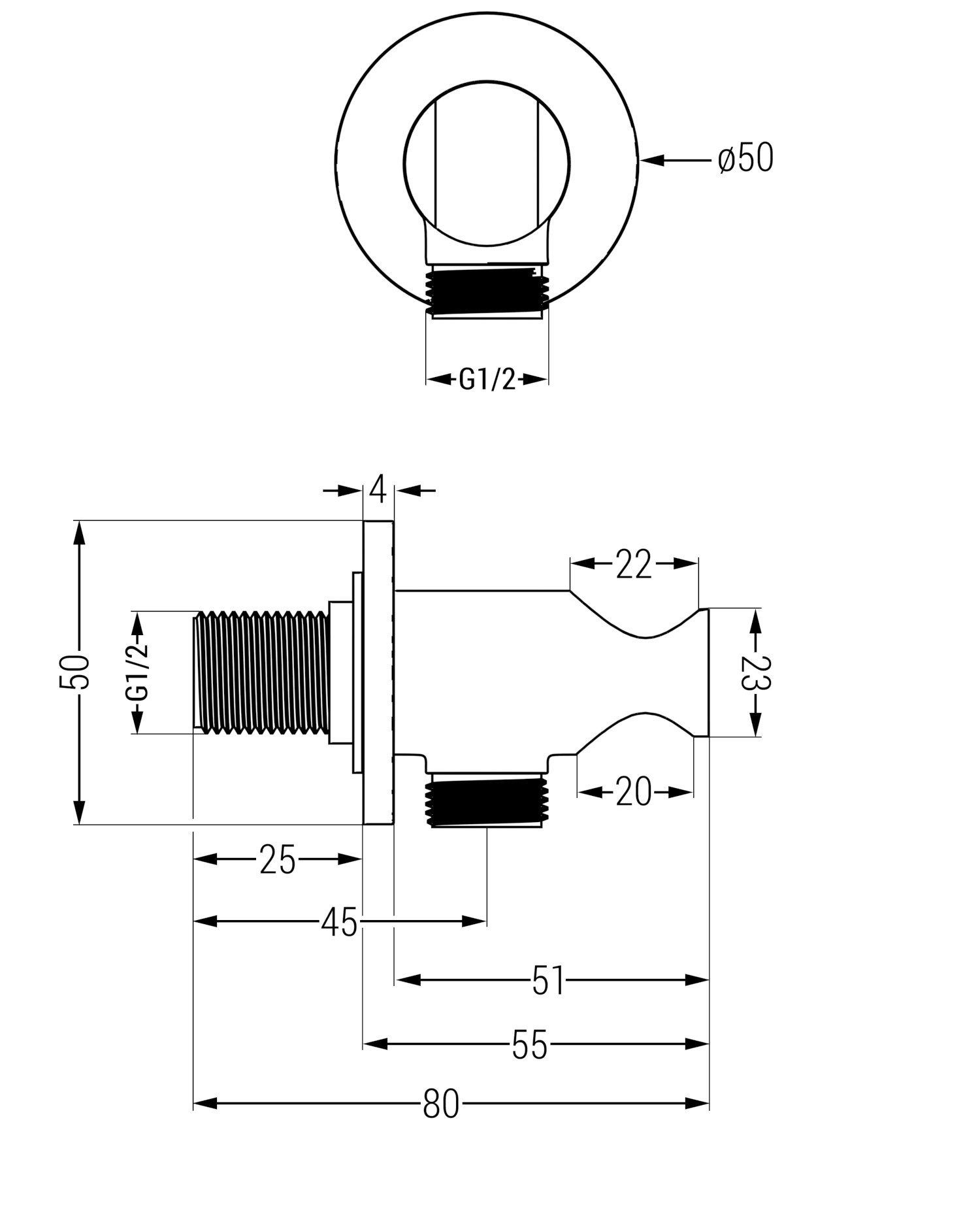 Conexiunea cu fir de 1/2 "este un element standard utilizat frecvent în instalațiile interne de apă. Datorită acestui fapt, conexiunea și asamblarea elementelor ulterioare ale dușului este mult mai ușoară și mai intuitivă.
