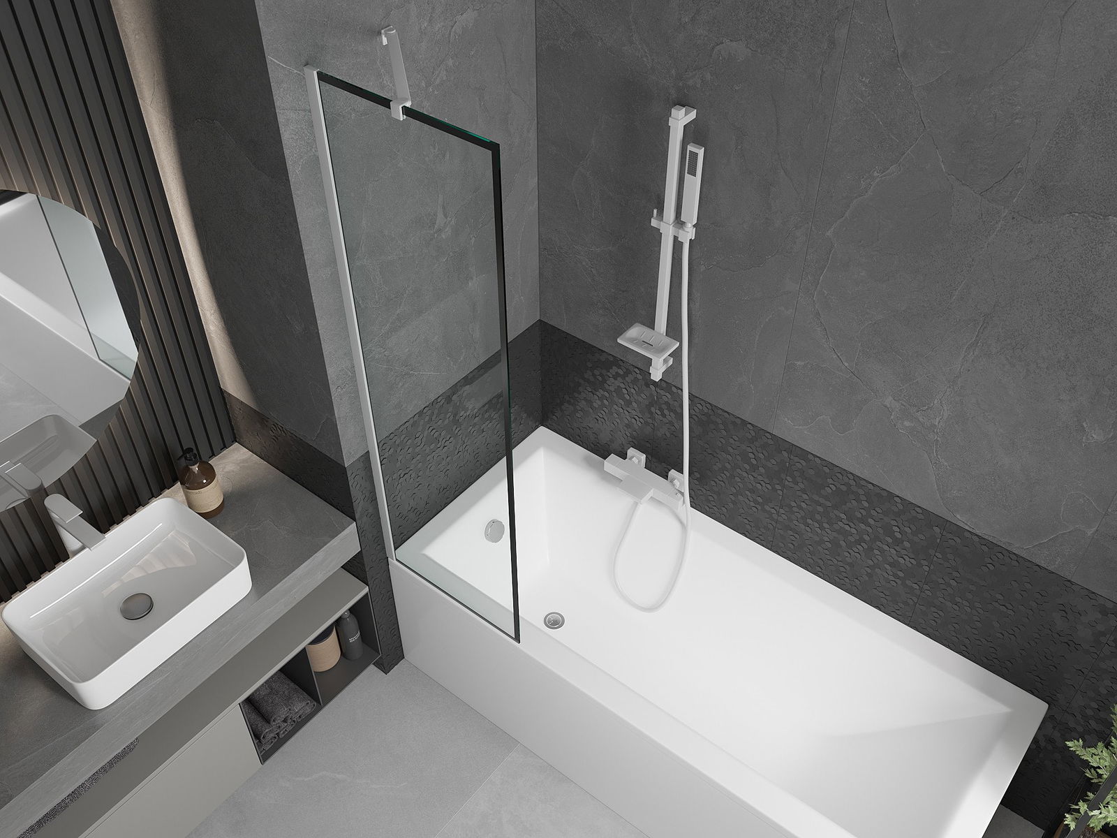 Protecție eficientă împotriva vărsării apei în timpul scăldării. Ecranul are sigilii care se adaptează perfect la sticla din sticlă și marginea carii. O soluție funcțională care asigură siguranță și întreținere ușoară.