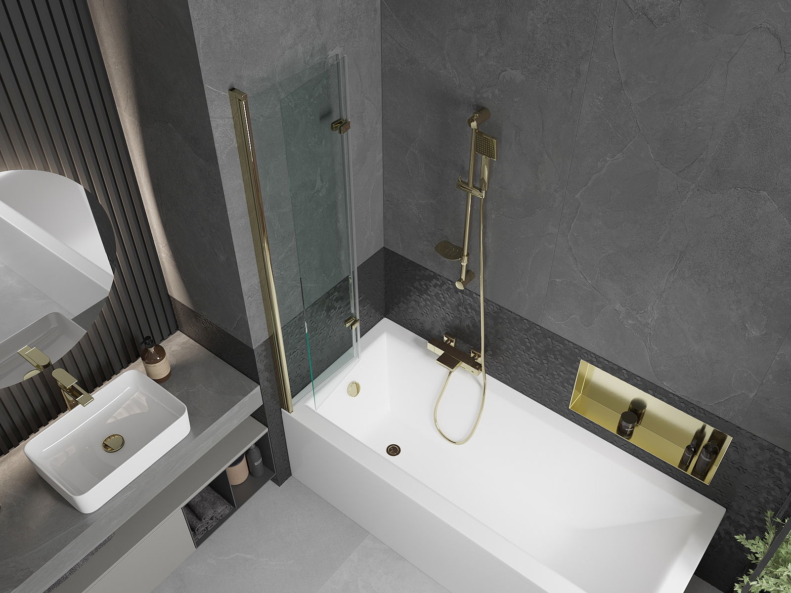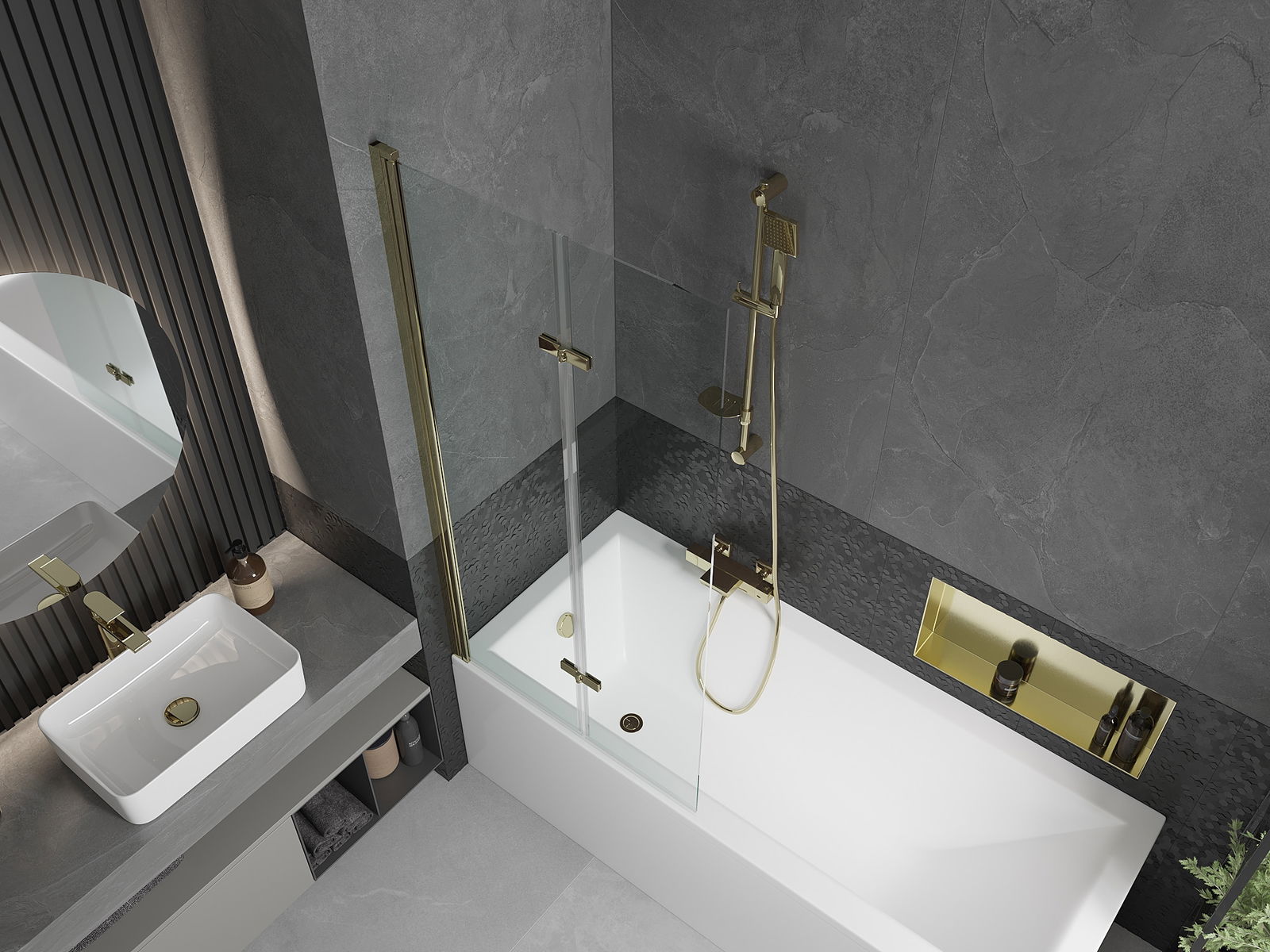 Ecranul este format din două aripi cu posibilitatea de pliere. Această soluție economisește mai mult spațiu în baie și vă permite să utilizați liber spațiul rămas atunci când nu folosim zona de baie.
