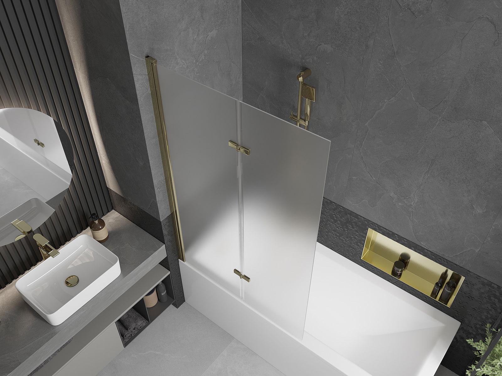 Ecranul este format din două aripi cu posibilitatea de pliere. Această soluție economisește mai mult spațiu în baie și vă permite să utilizați liber spațiul rămas atunci când nu folosim zona de baie.